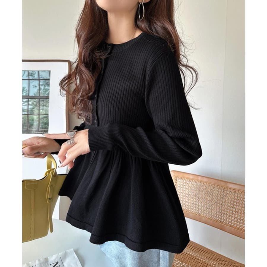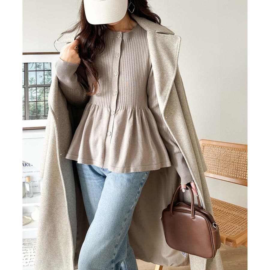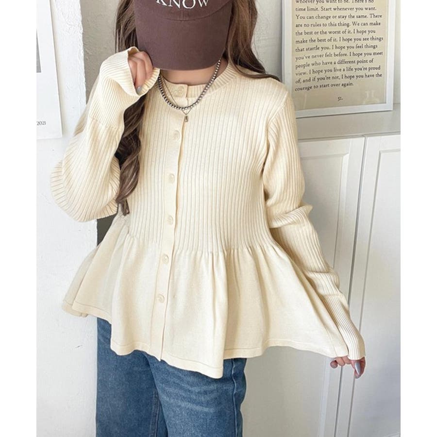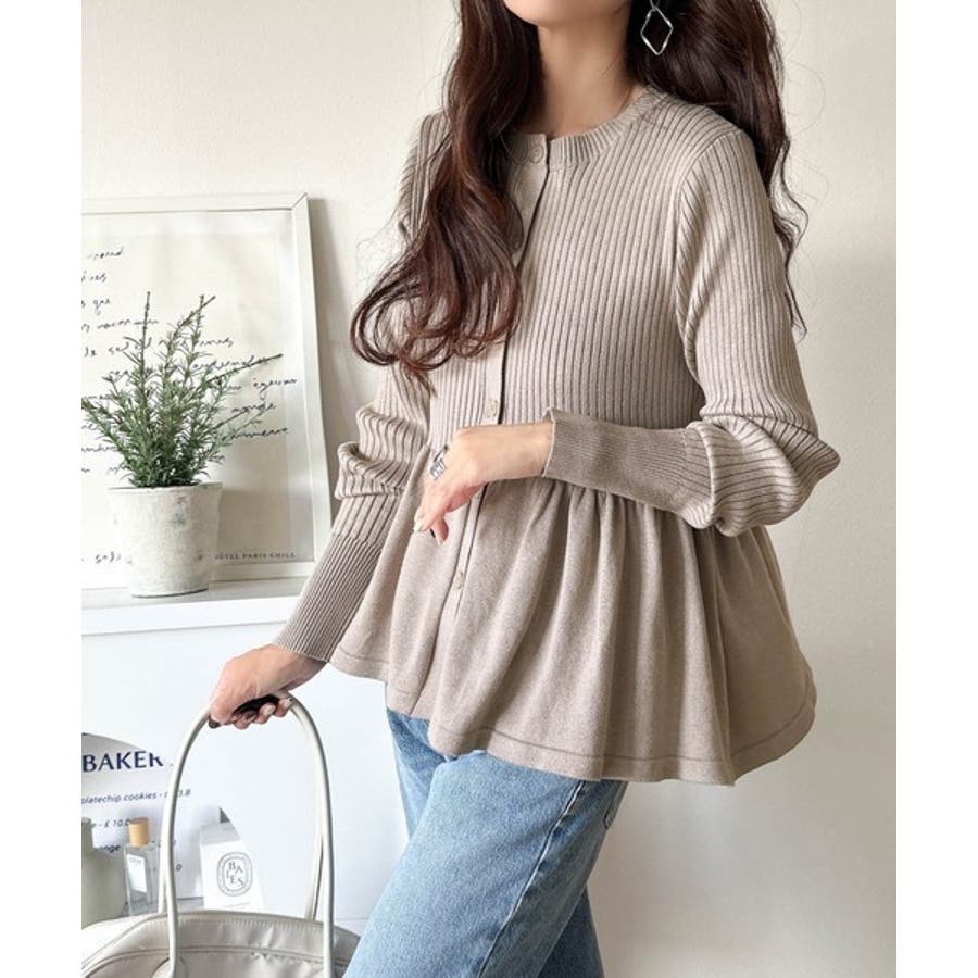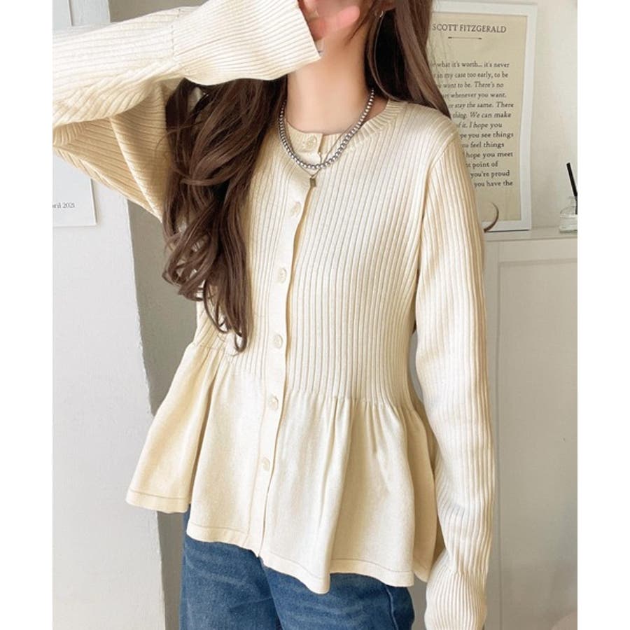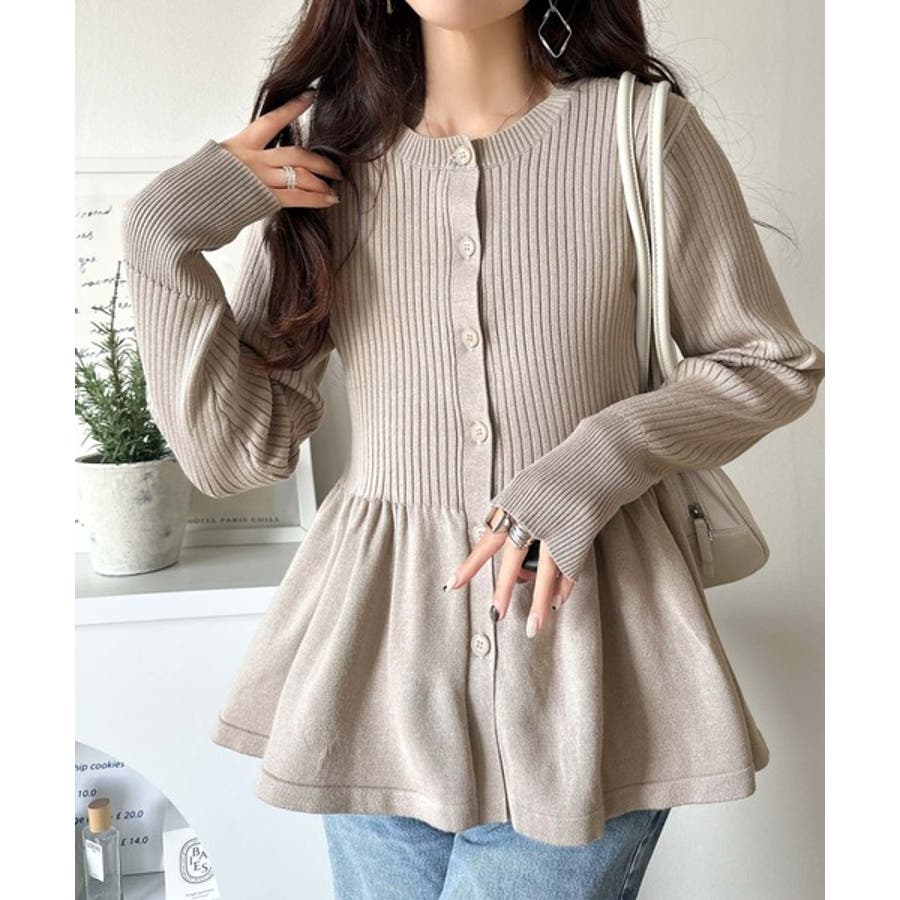 "メリハリ"シルエットで即きれい見え◎リブフリルペプラムカーデトップス(長袖)