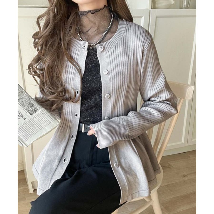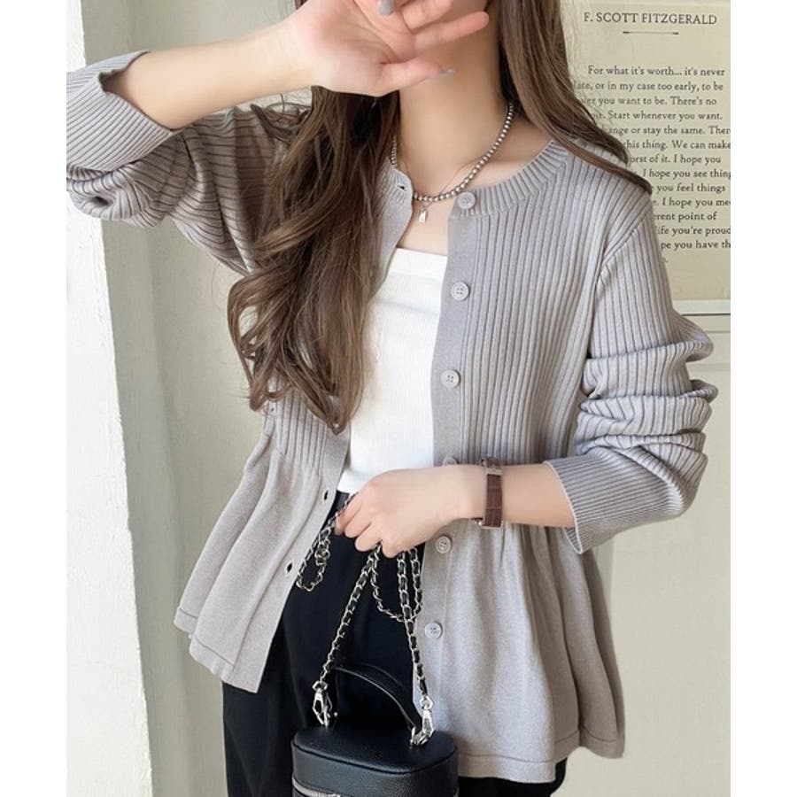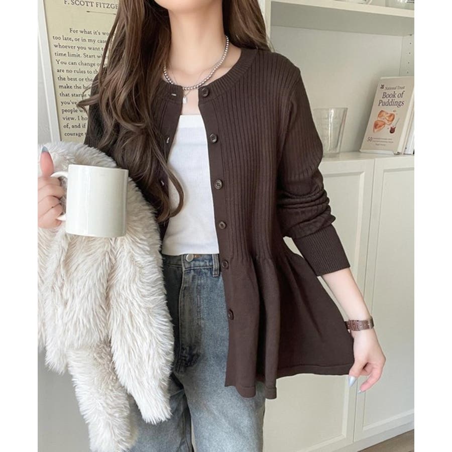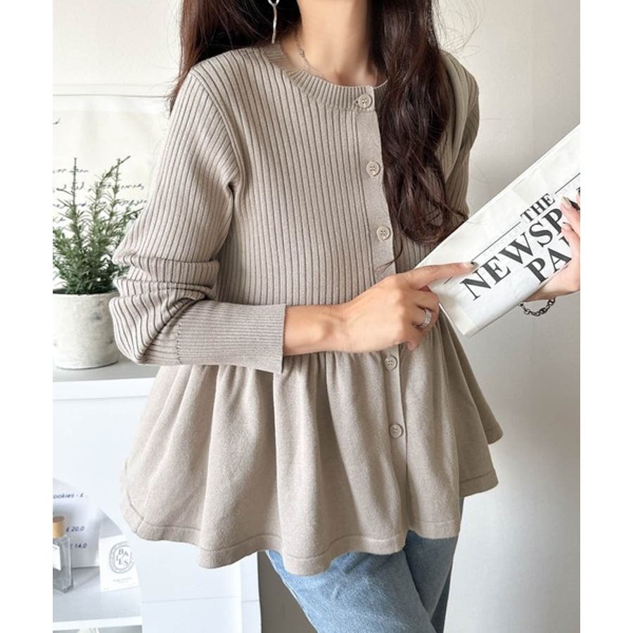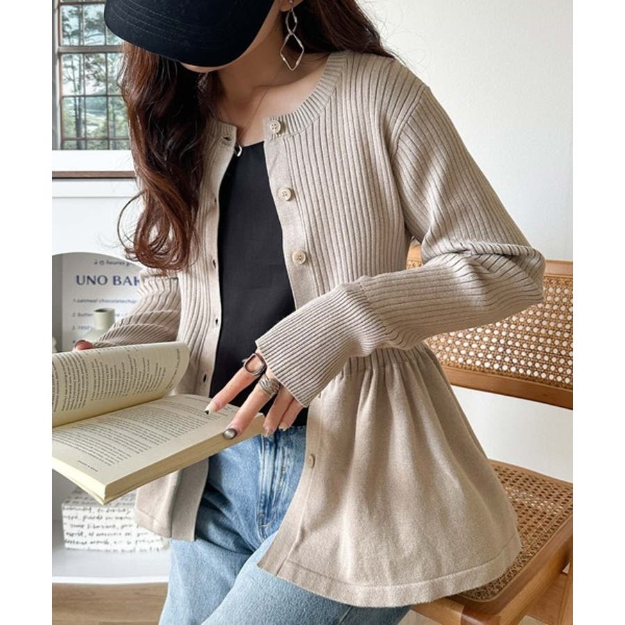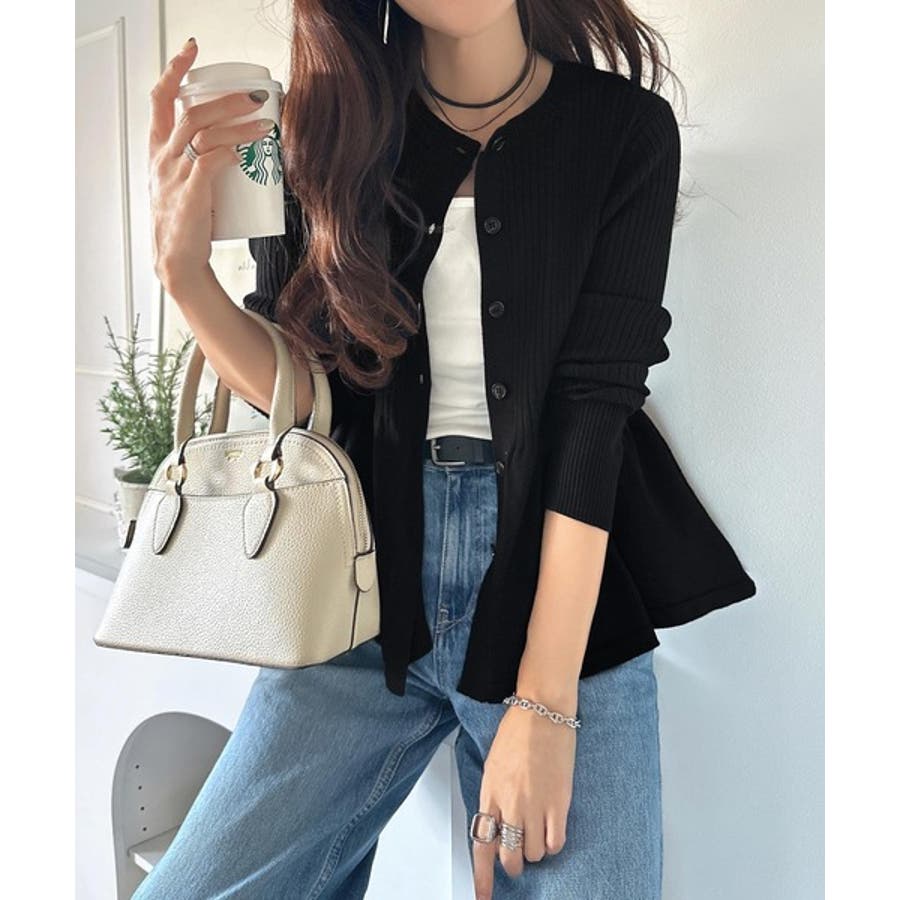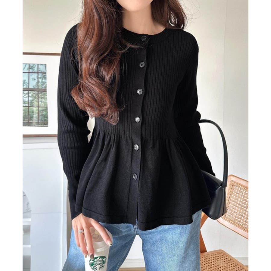 "メリハリ"シルエットで即きれい見え◎リブフリルペプラムカーデトップス(長袖)