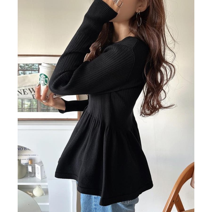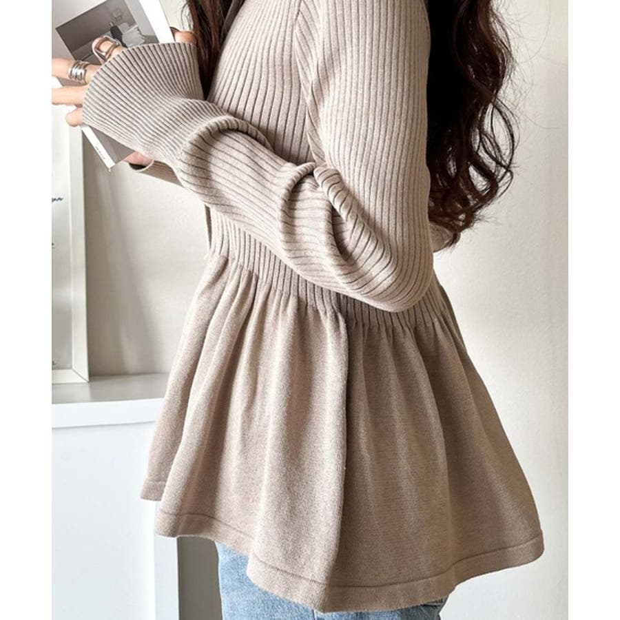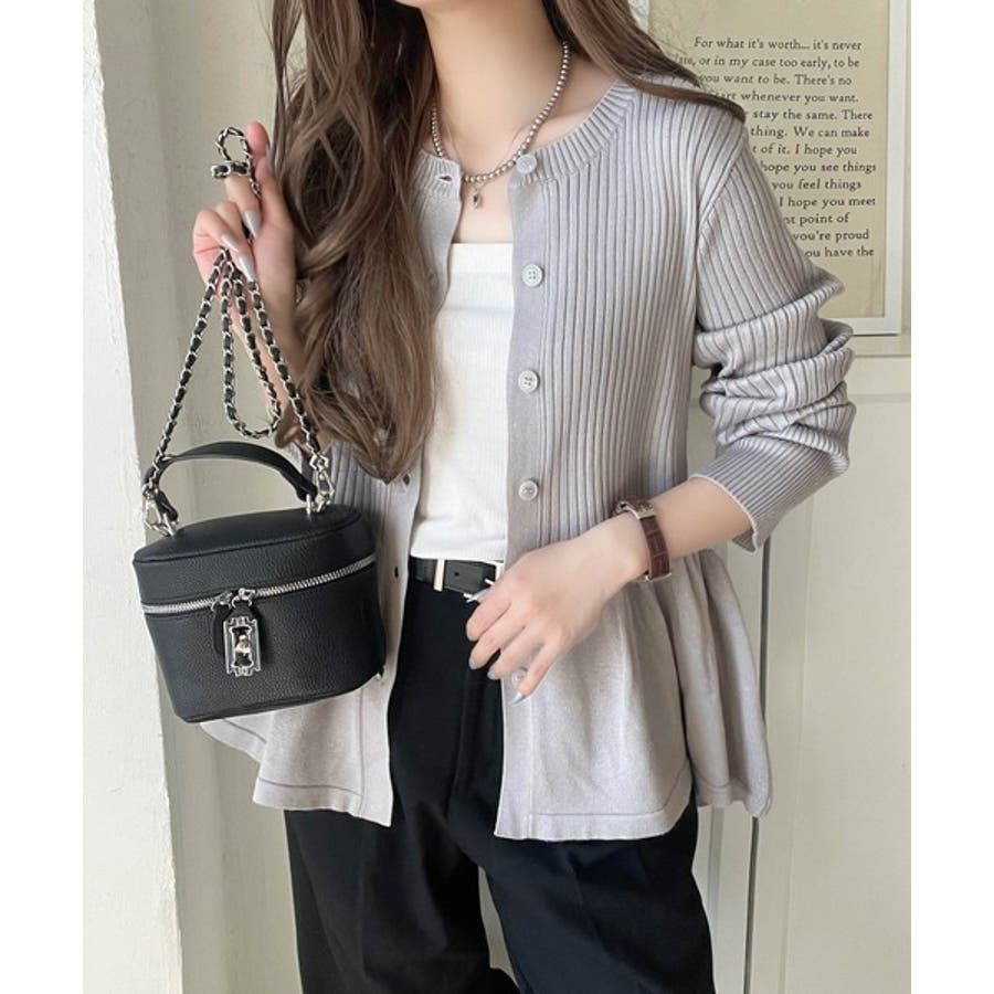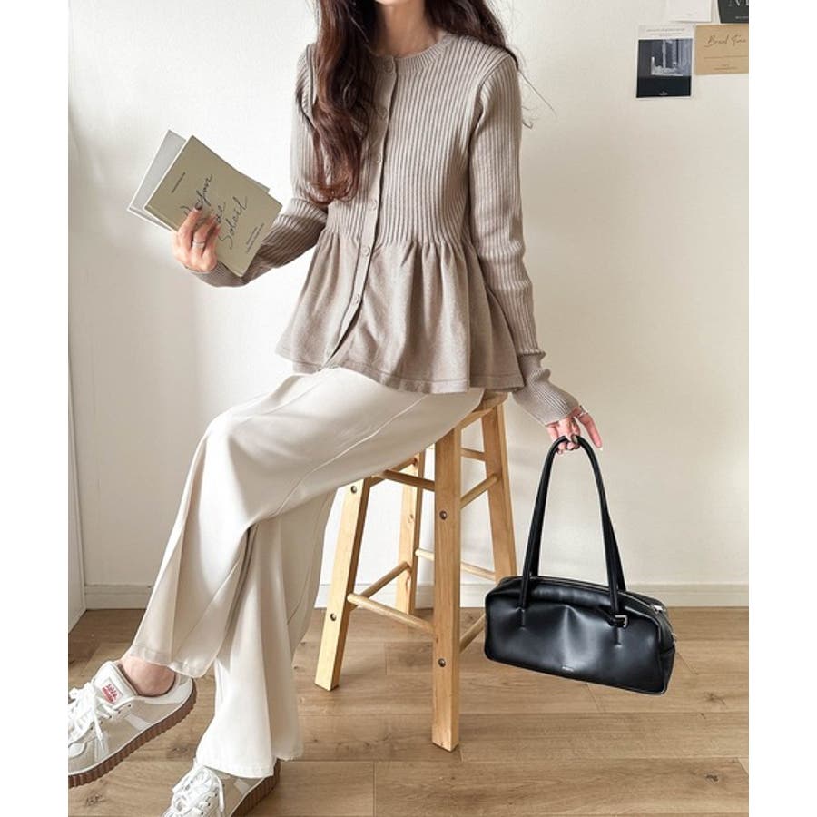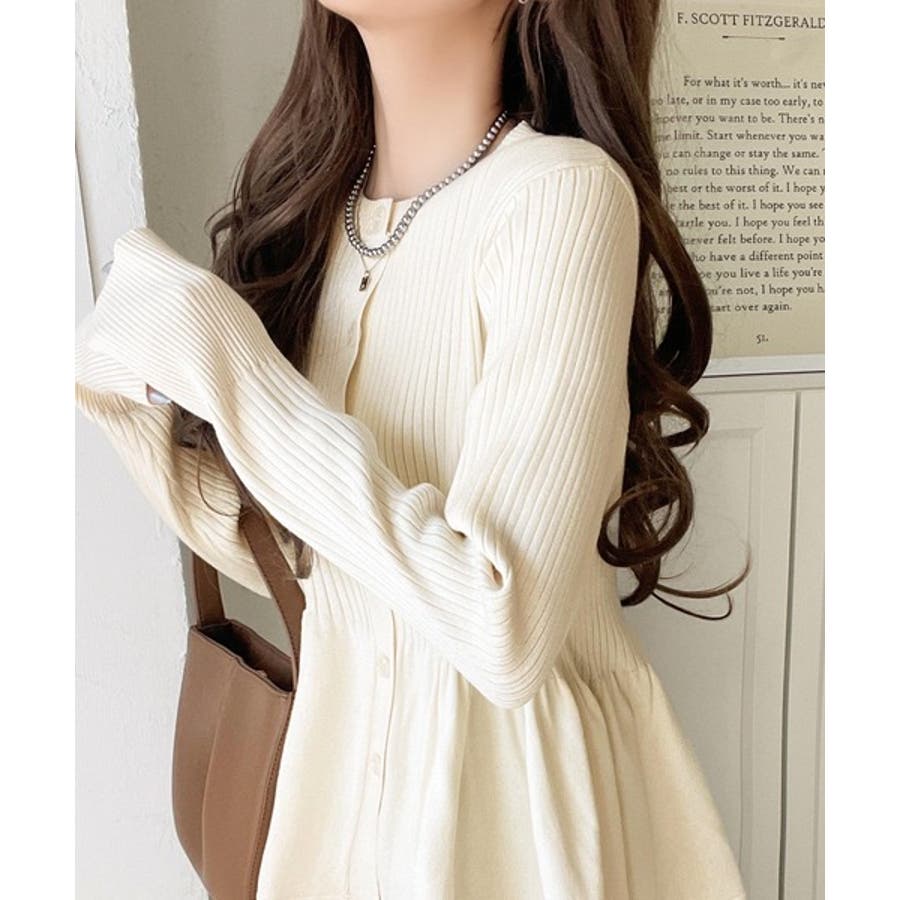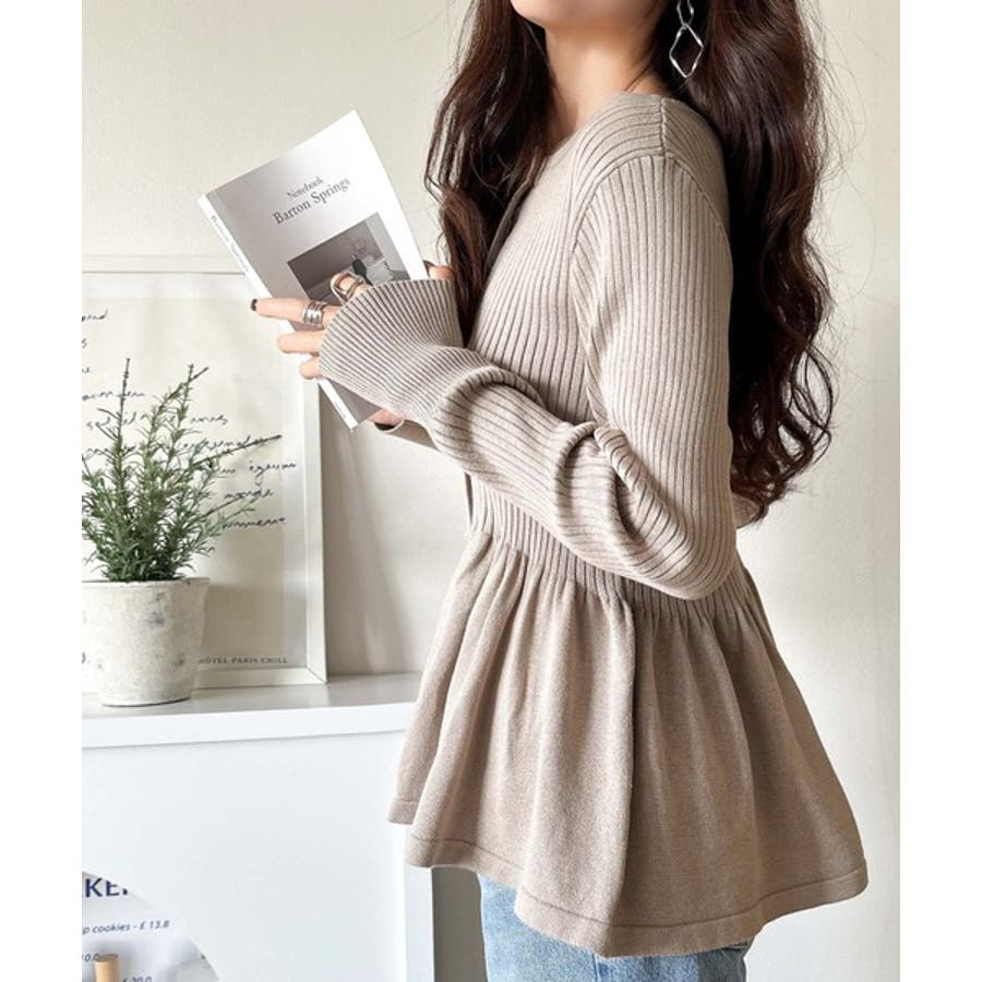"メリハリ"シルエットで即きれい見え◎リブフリルペプラムカーデトップス(長袖)