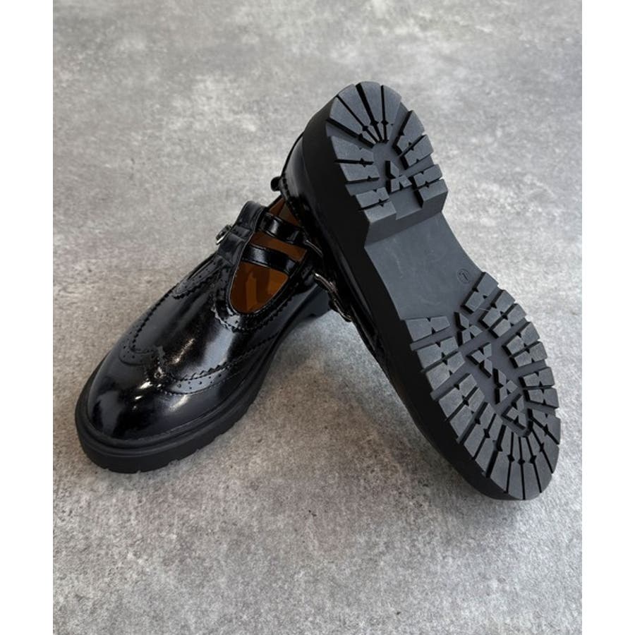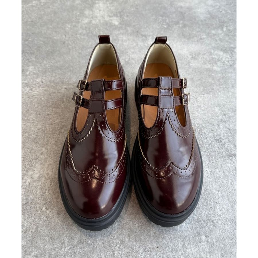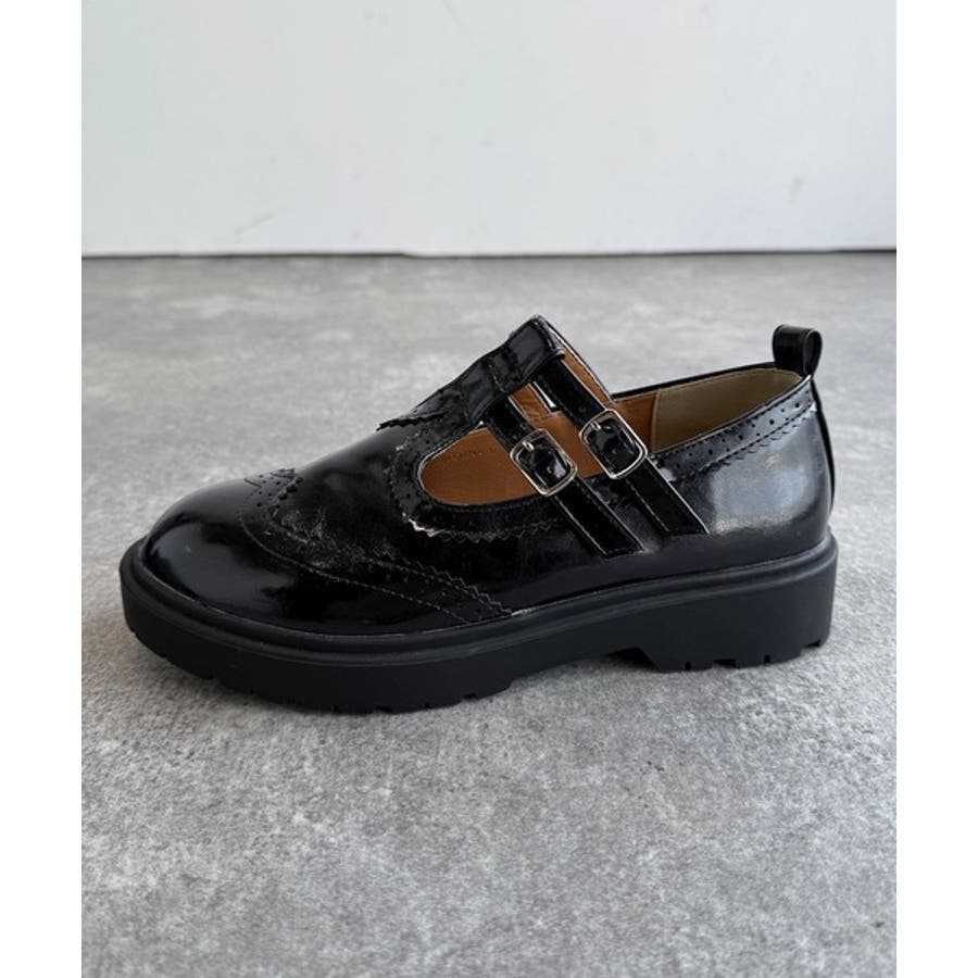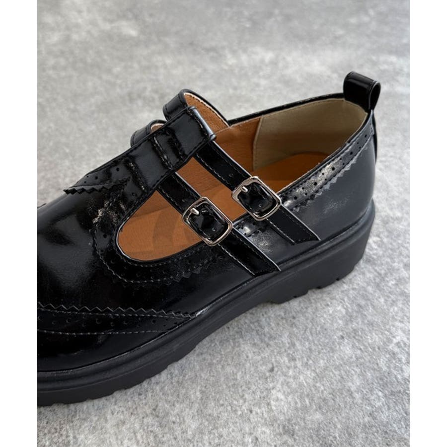 ・マニッシュデザイン+Tストラップで可愛さもプラス