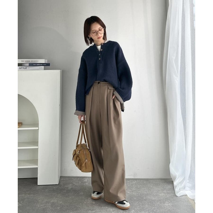 ワイドパンツでトレンド感を演出。タートルネックをインナーに重ねても◎。