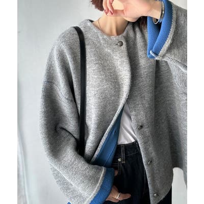 配色で差がつくベーシックな一枚。Wフェイス配色ニットカーディガン