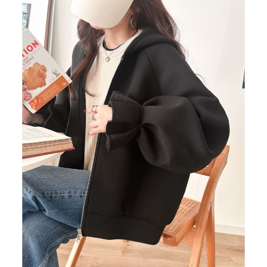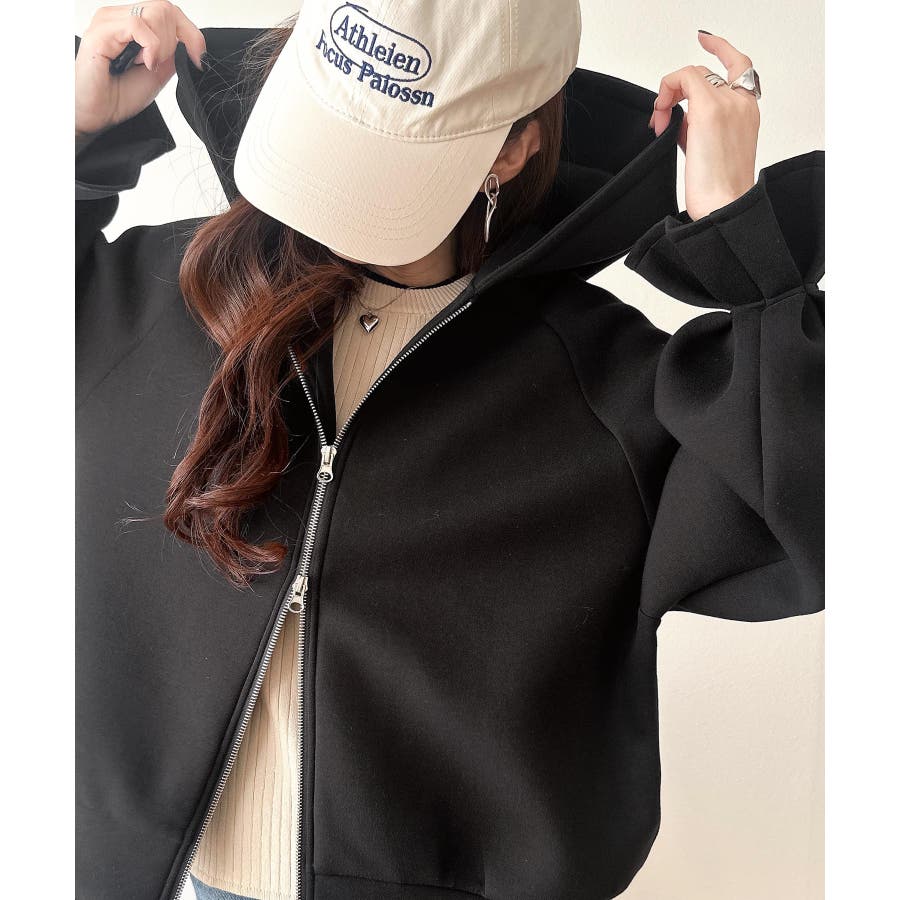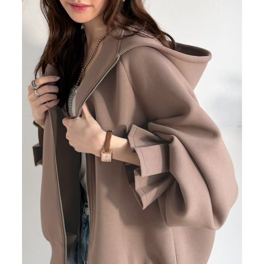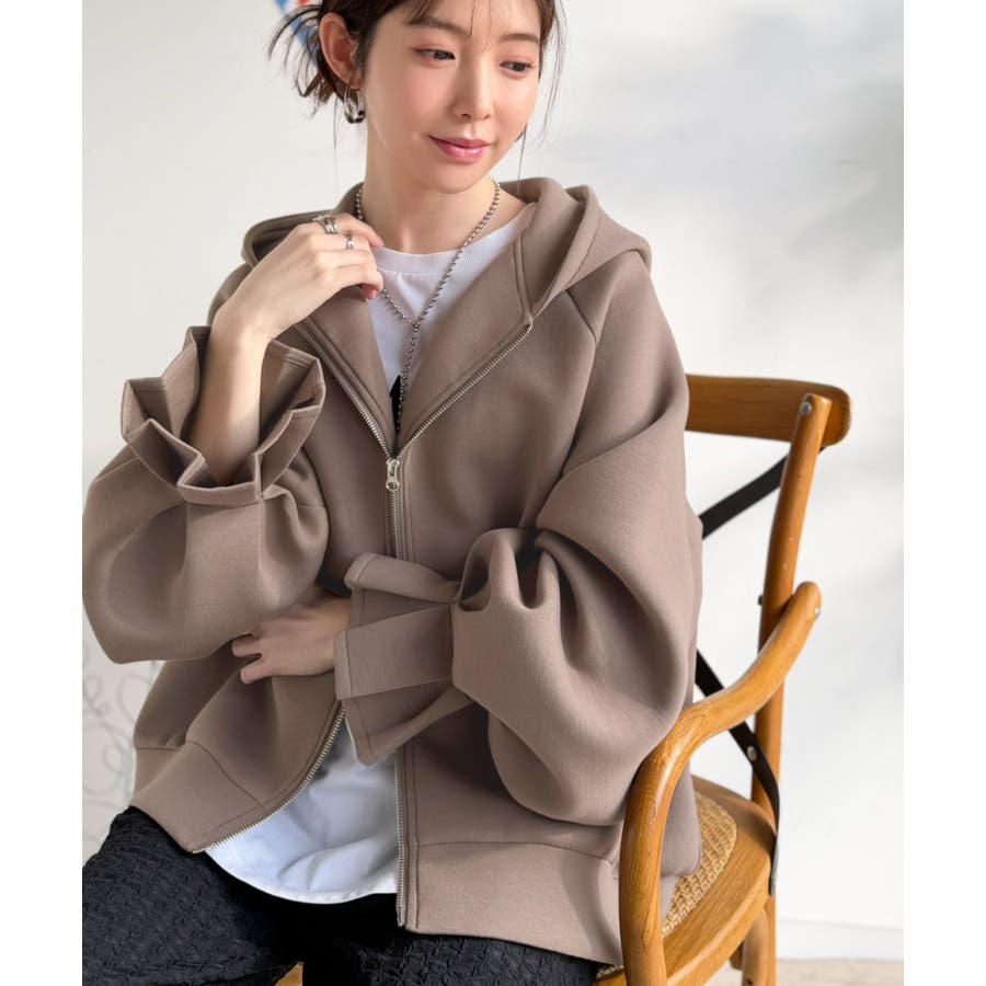 立体感のあるフードとボリューム袖が、カジュアルな中に女性らしさとトレンド感をプラスします。