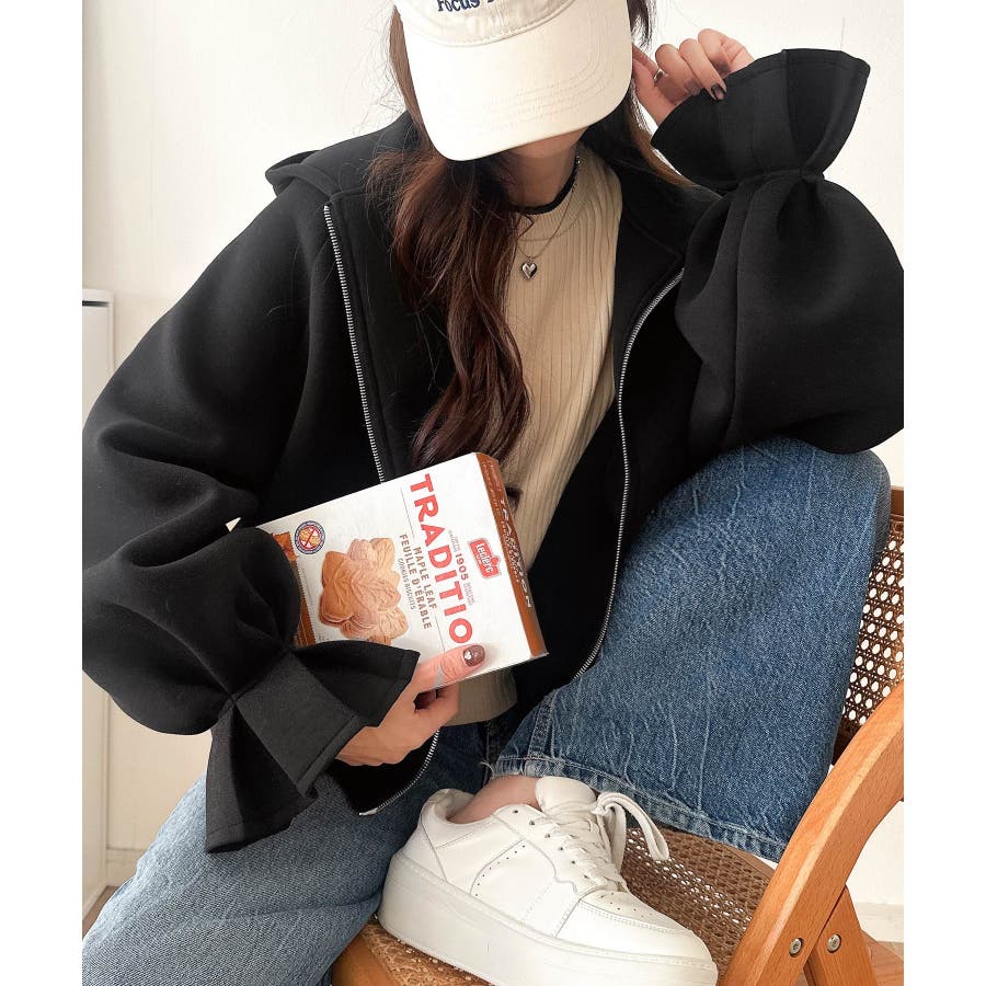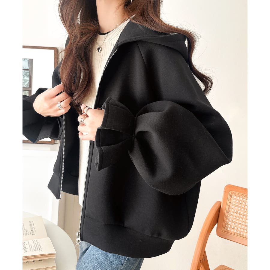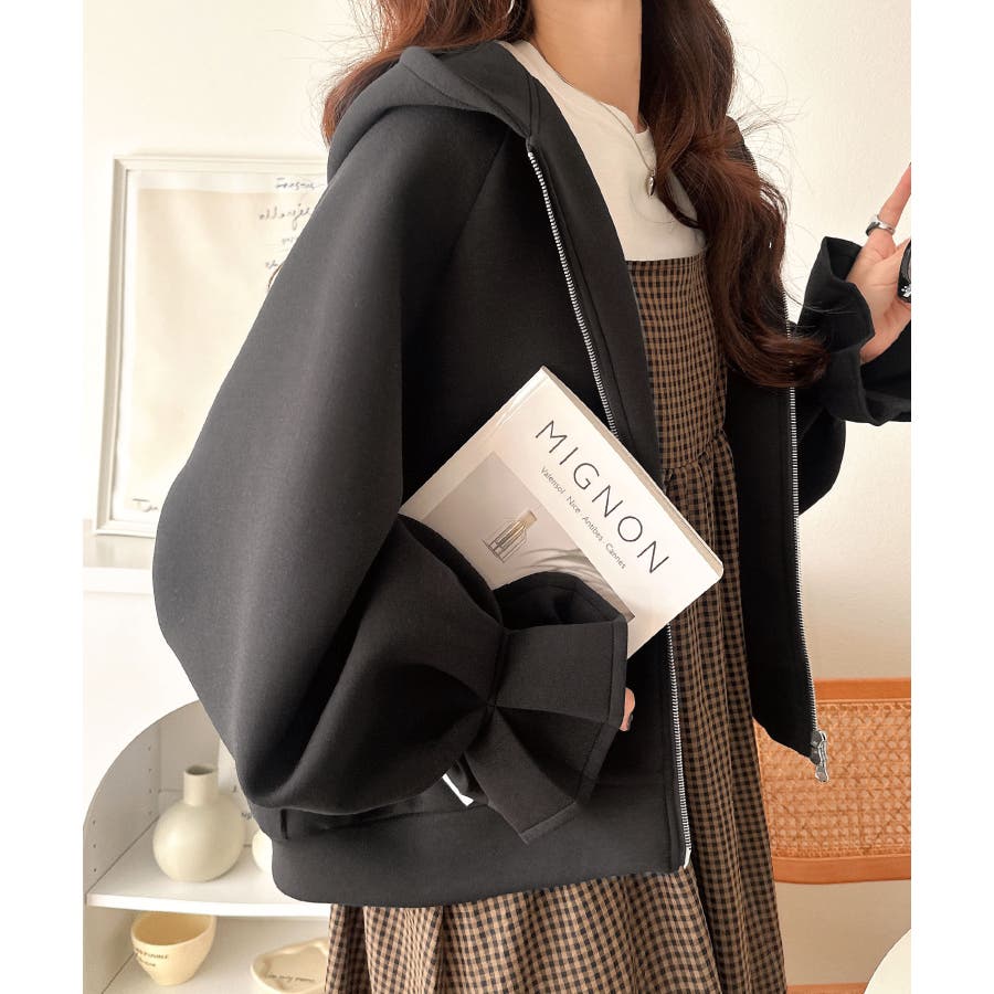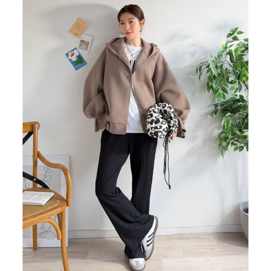立体感のあるフードとボリューム袖が、カジュアルな中に女性らしさとトレンド感をプラスします。