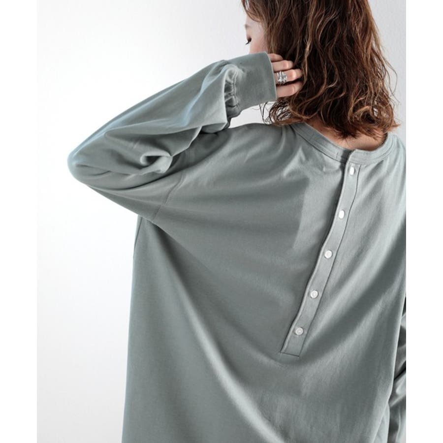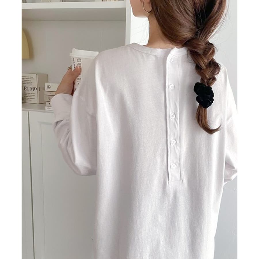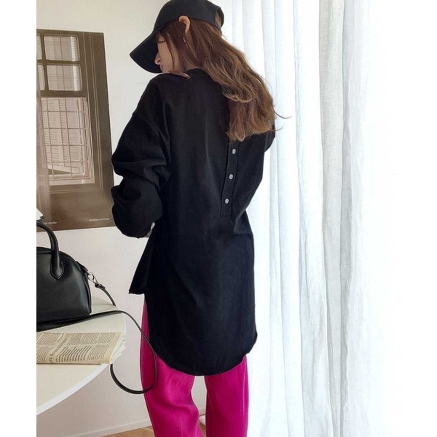 【ブラック】印象的な、うしろ姿に。バックヘンリーネックカットソー(長袖)