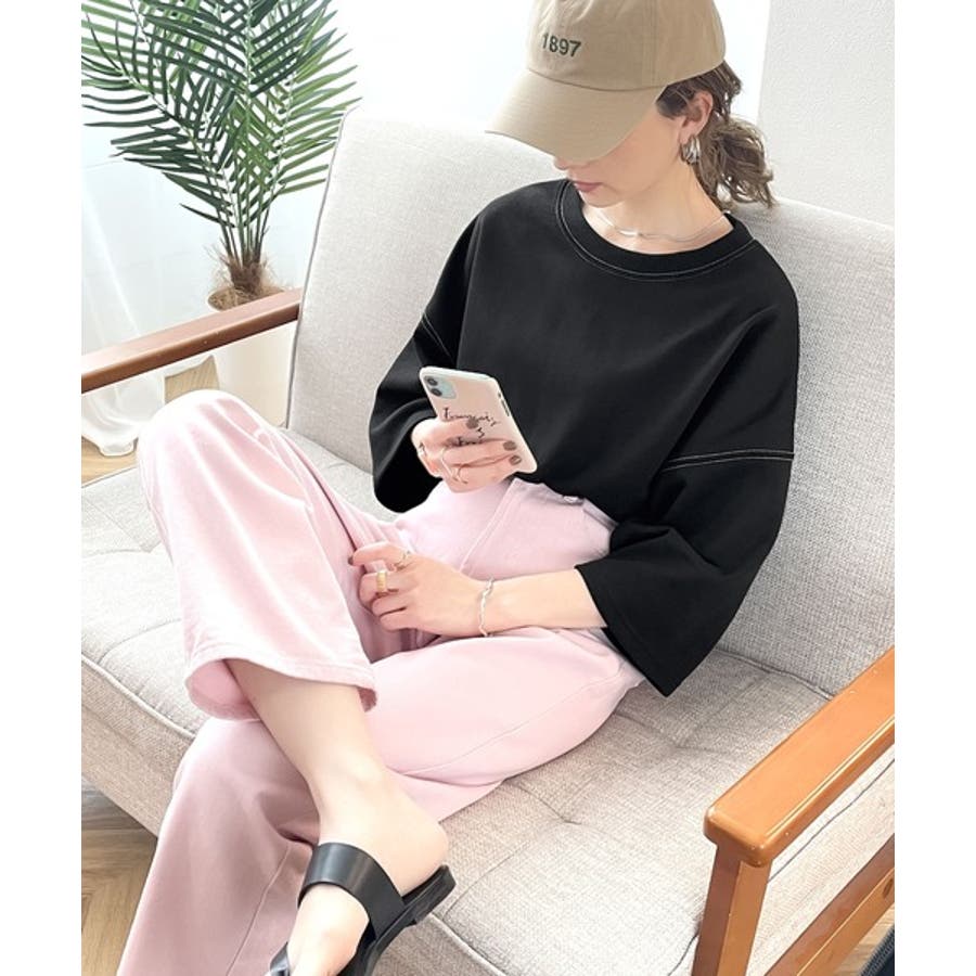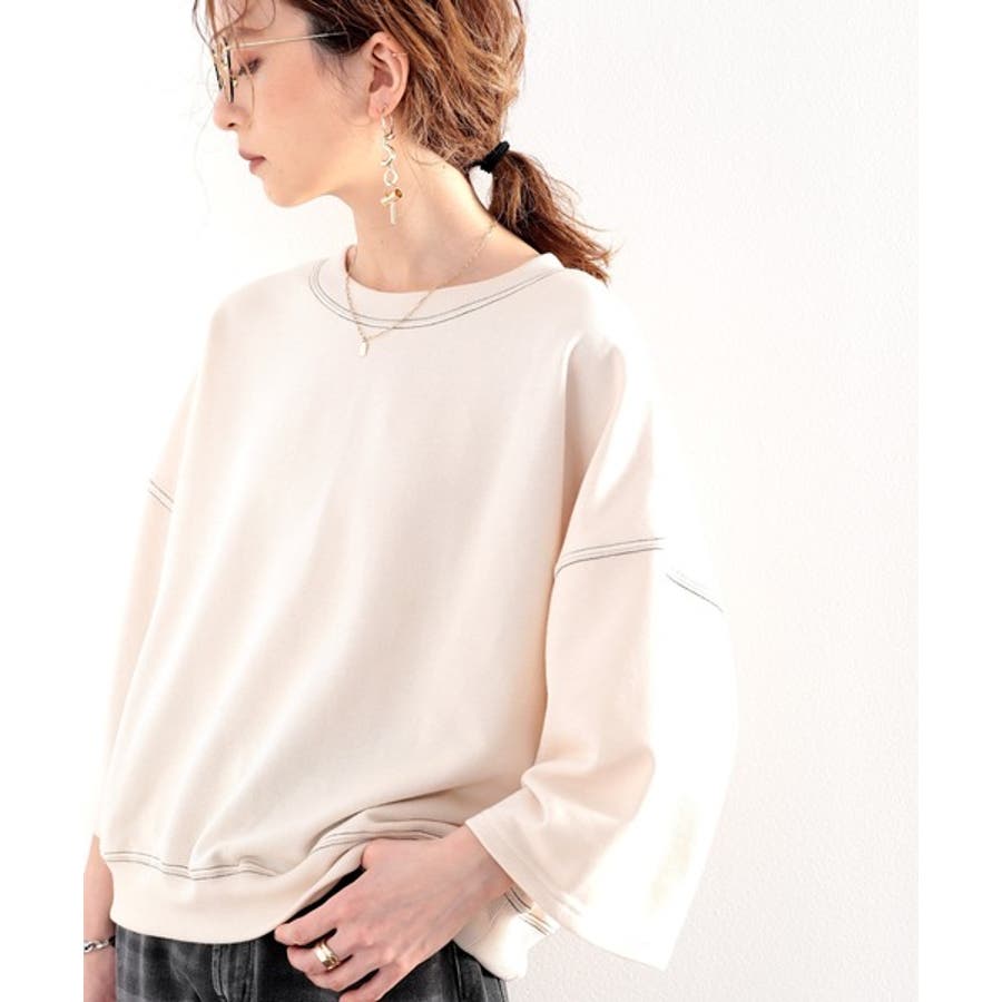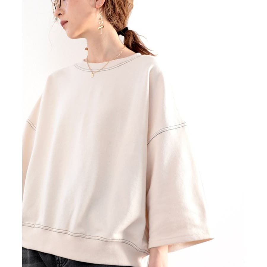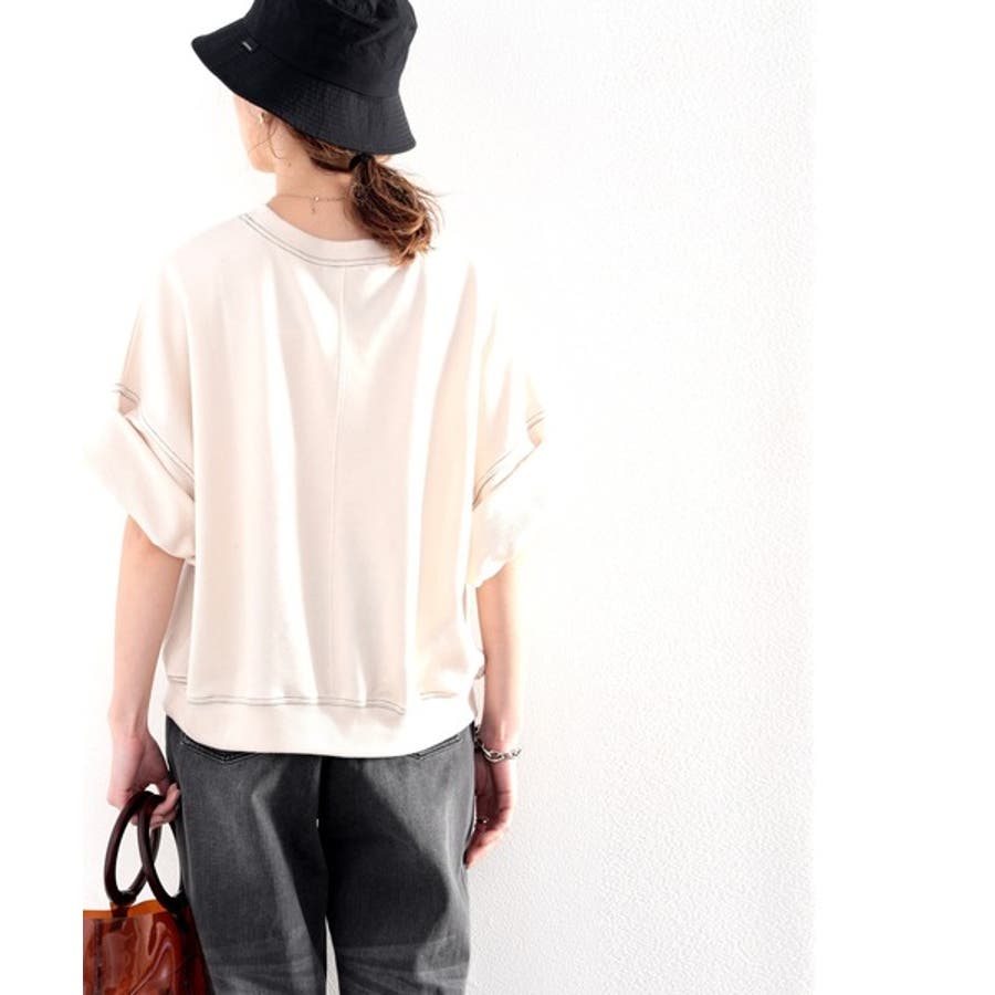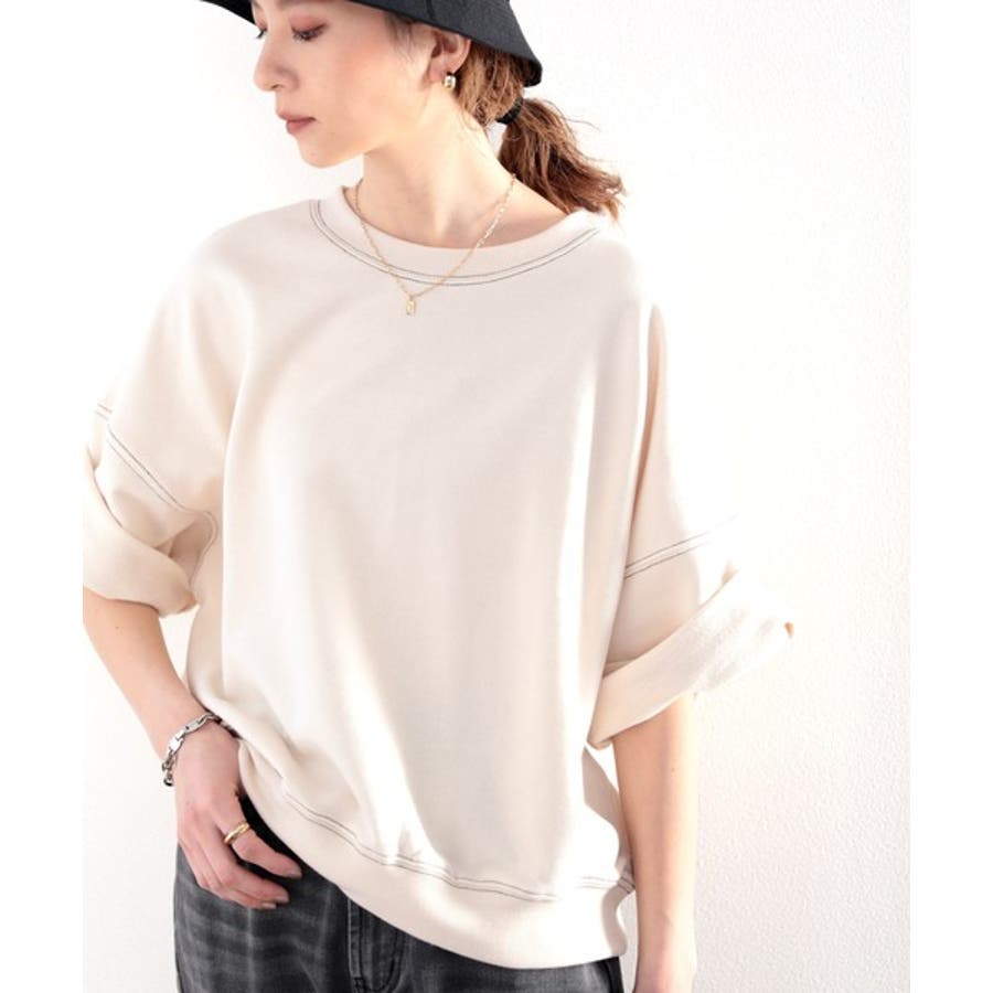 ステッチで1+。ゆったり5分袖スウェット