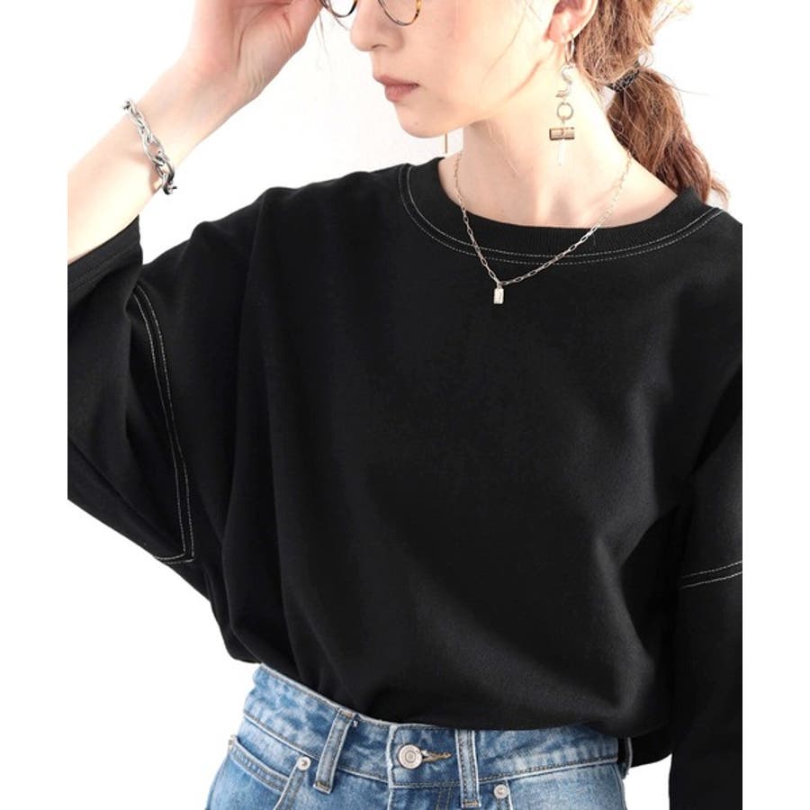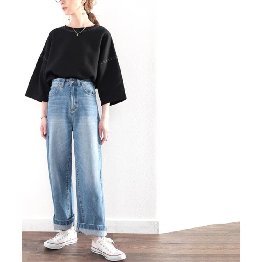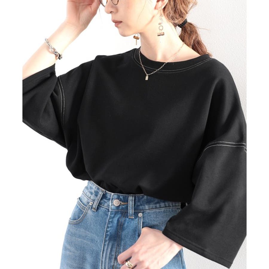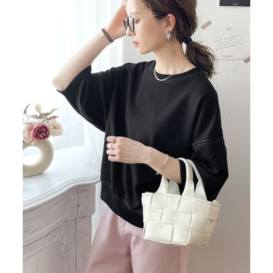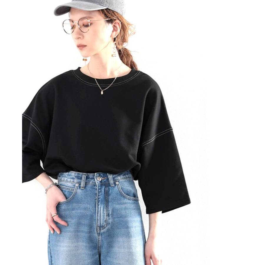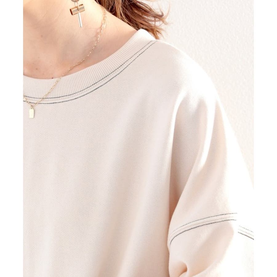 ステッチで1+。ゆったり5分袖スウェット