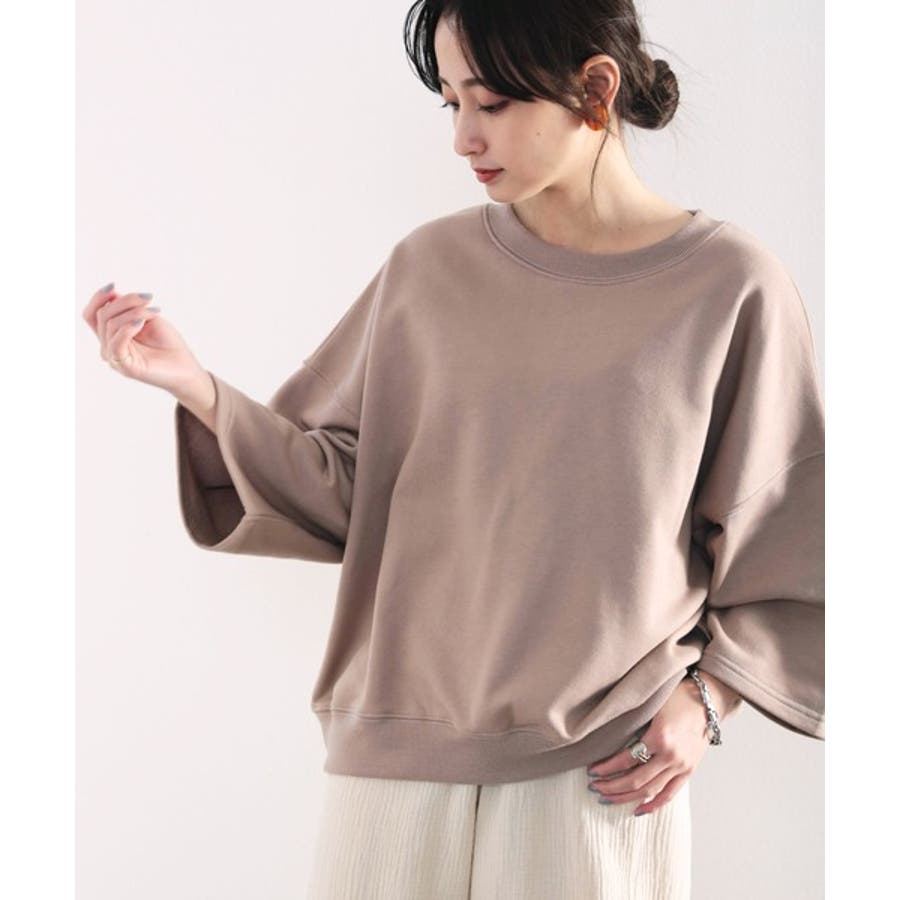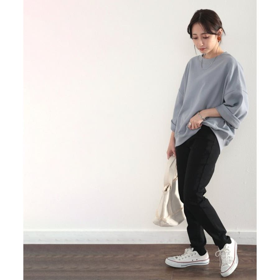 肩落ちシルエットから肘が隠れるぐらいの袖丈感が華奢見えするシルエット。