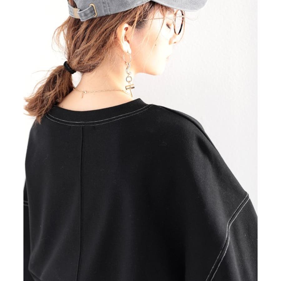 背中や袖、襟元のステッチが縦ラインを強調してビッグシルエットでもすきっり見せ。