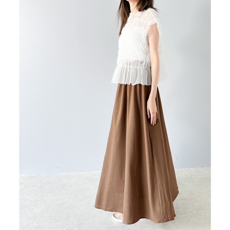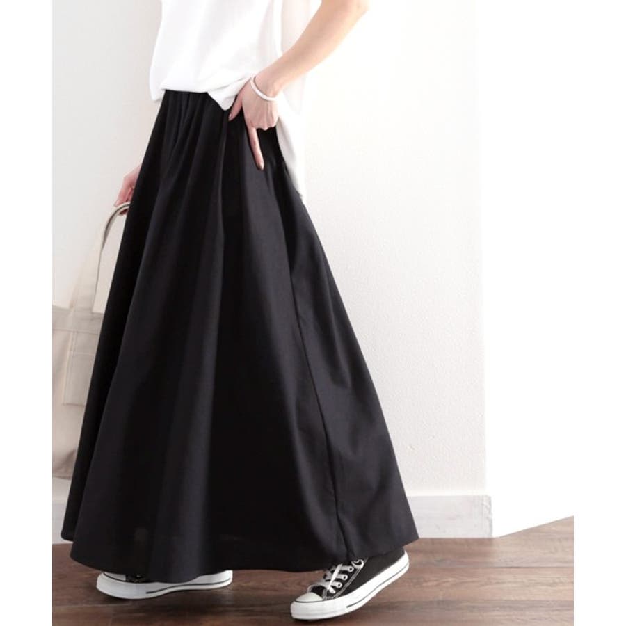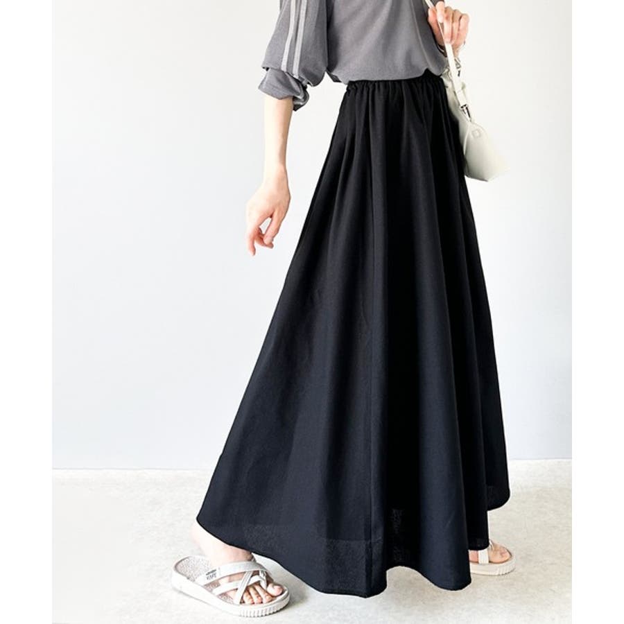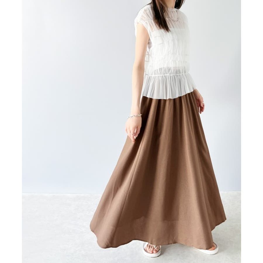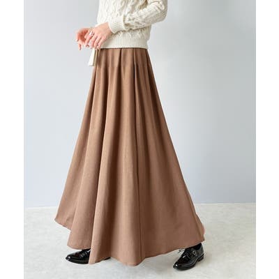 ウエストのタックとギャザーでふんわり裾広がりの立体的なフレアーのロング丈スカート。