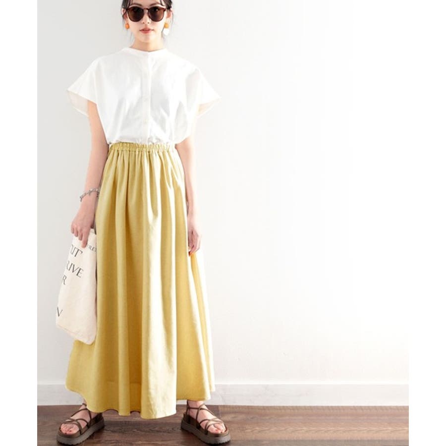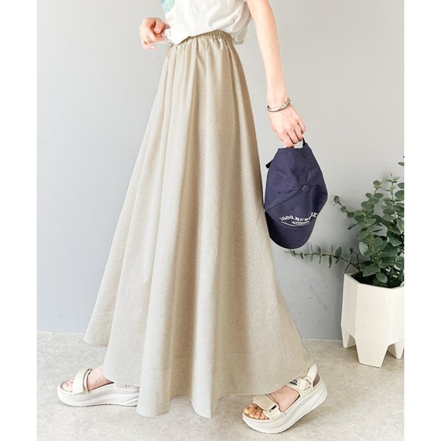 ナチュラルな風合いなコットンリネンを使用したマキシ丈スカート。