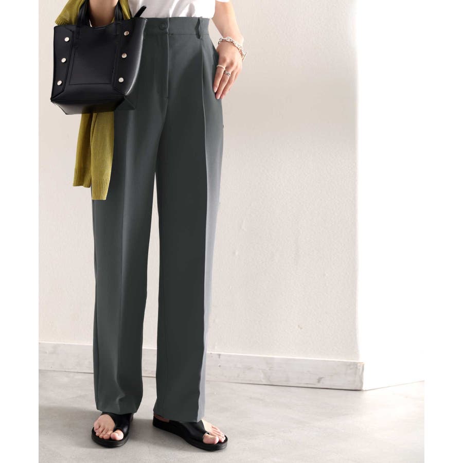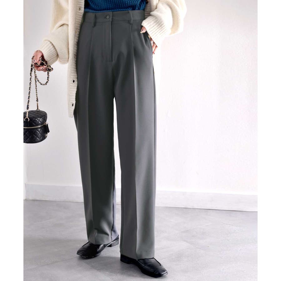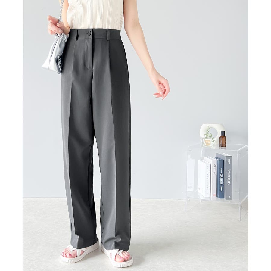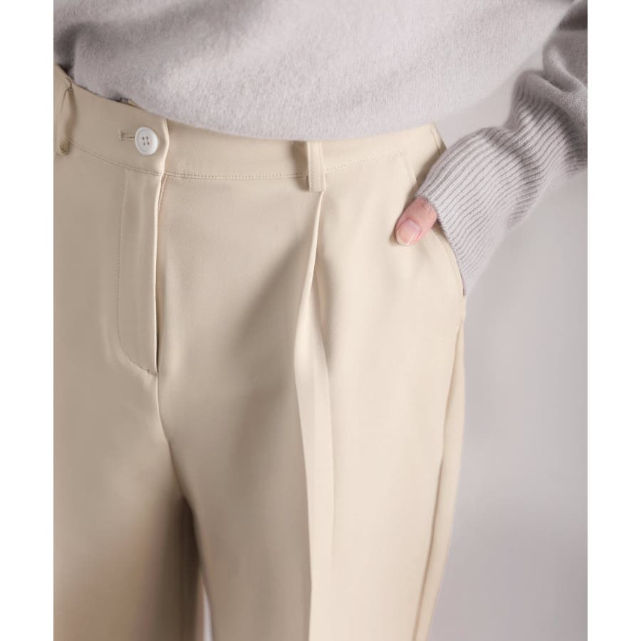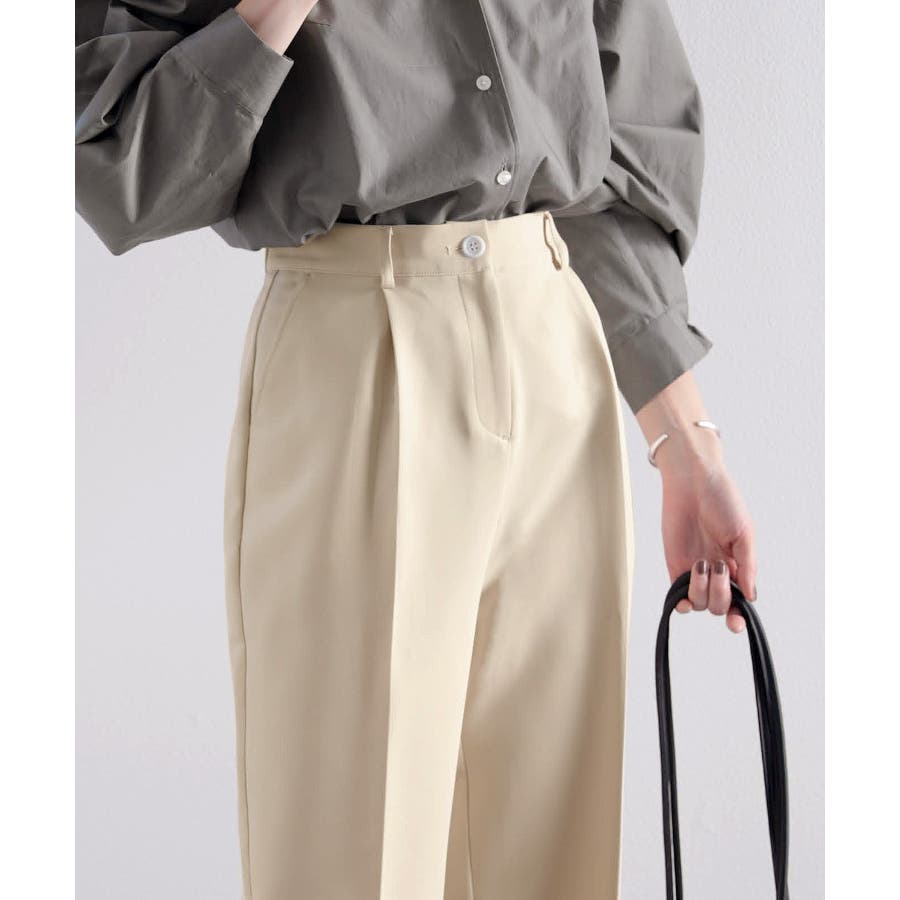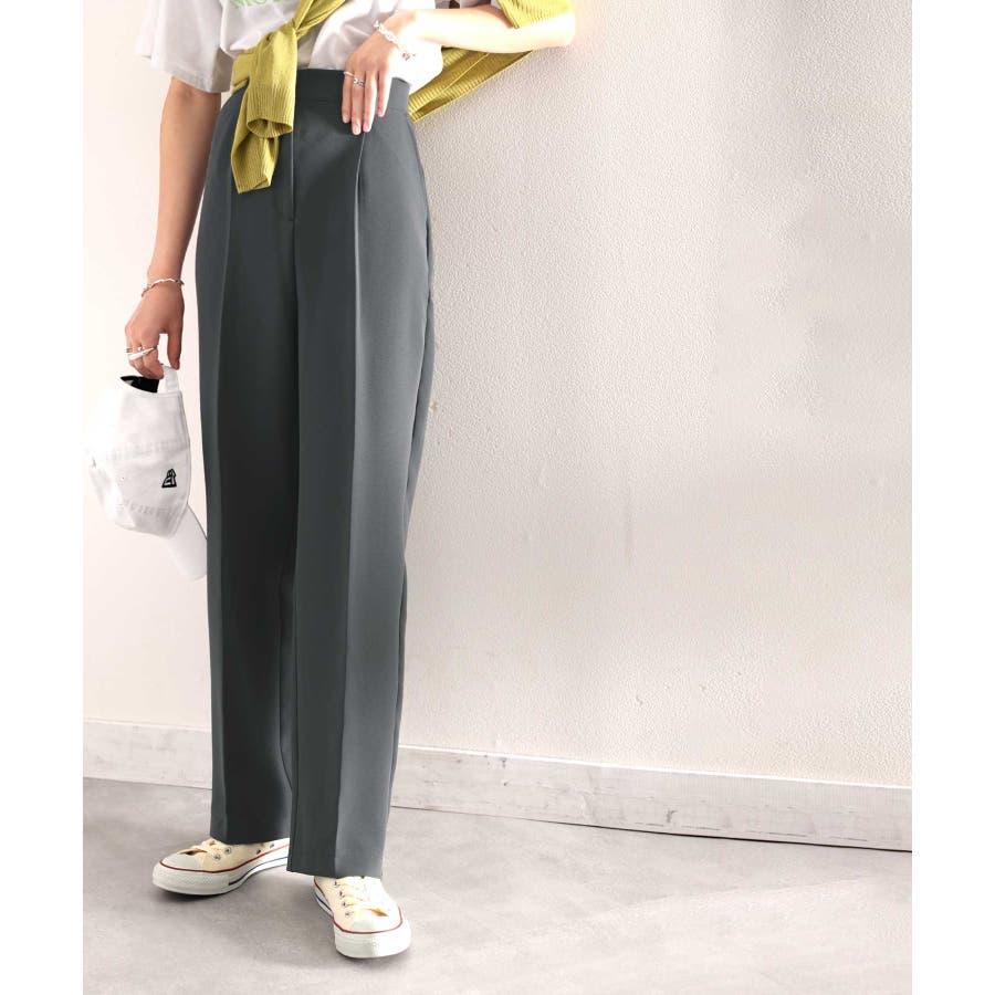 美脚魅せ、センタープレス。タック入りセミワイドパンツ