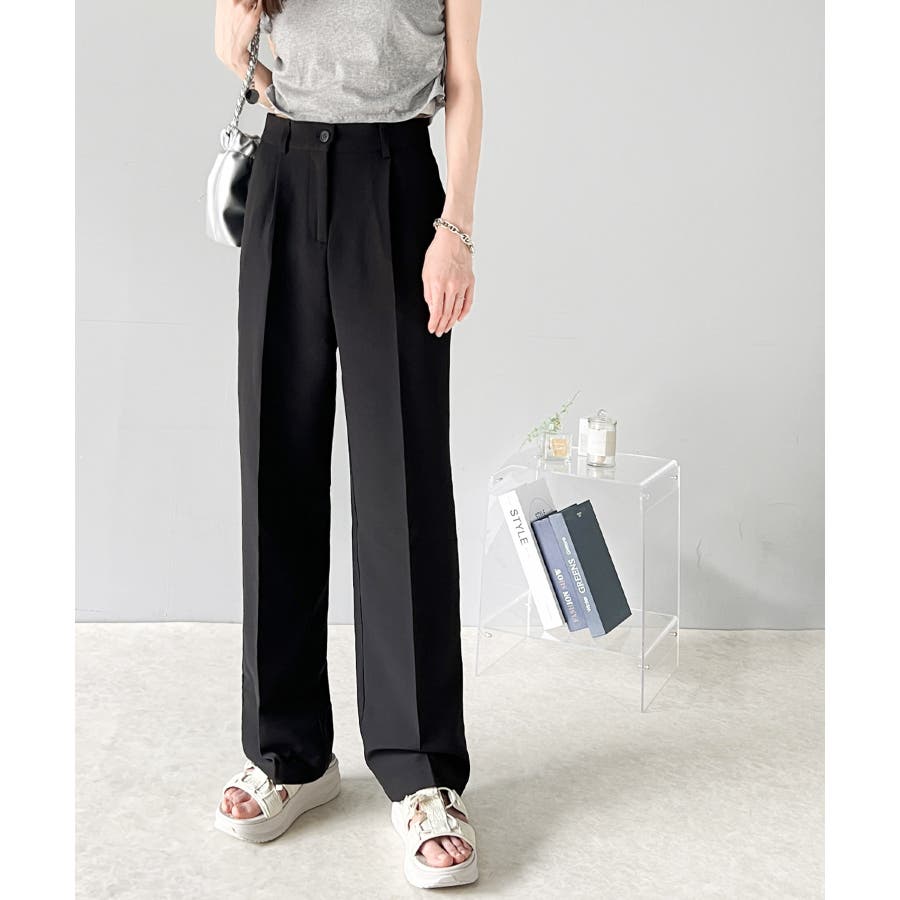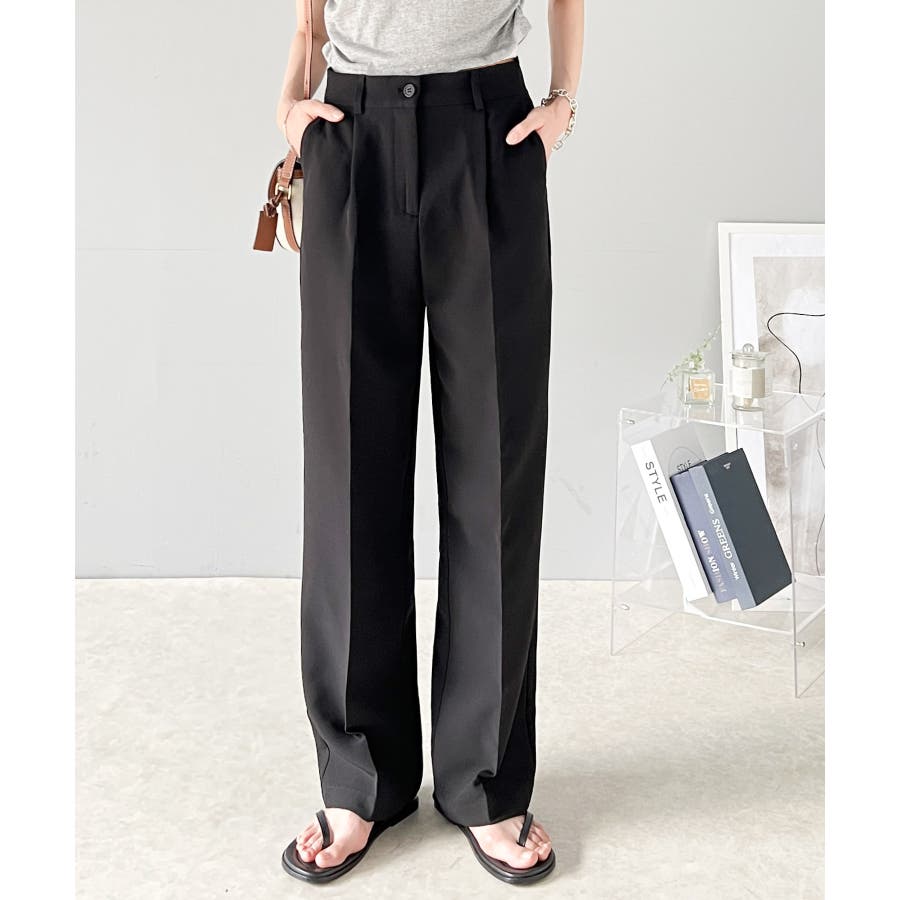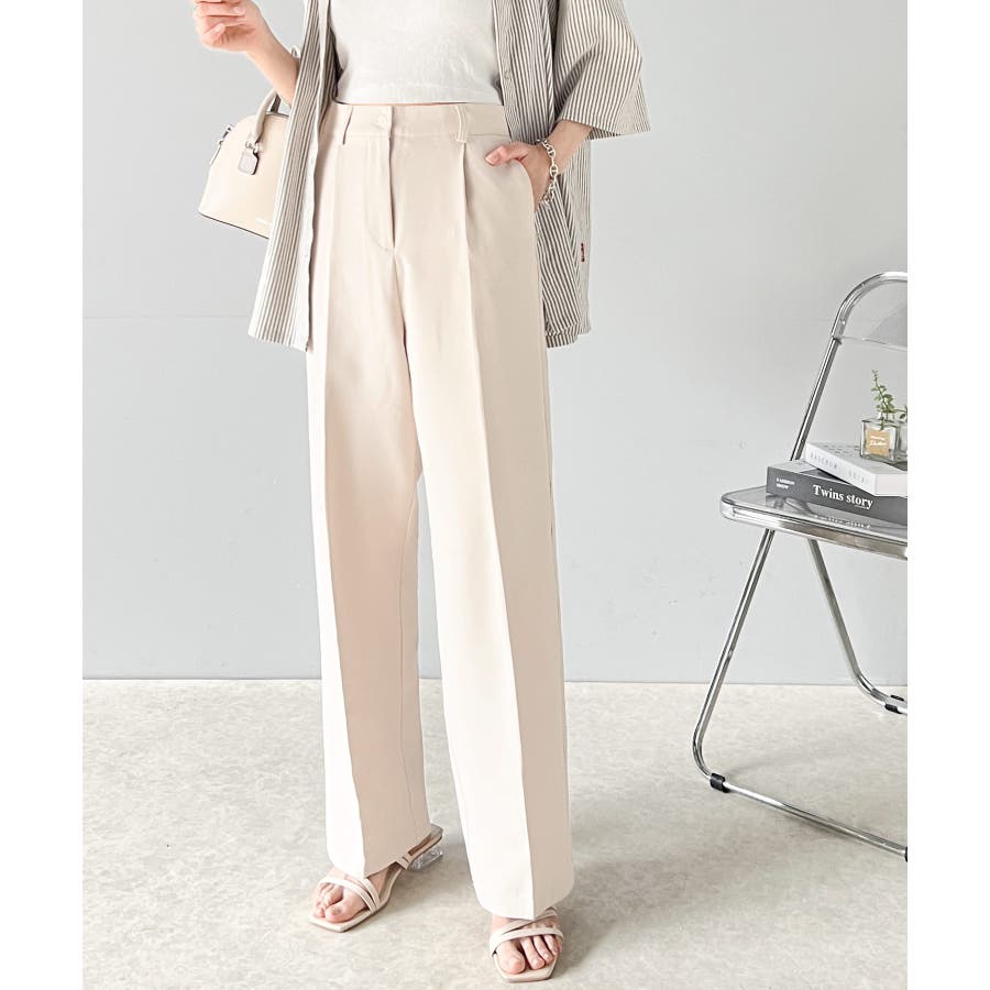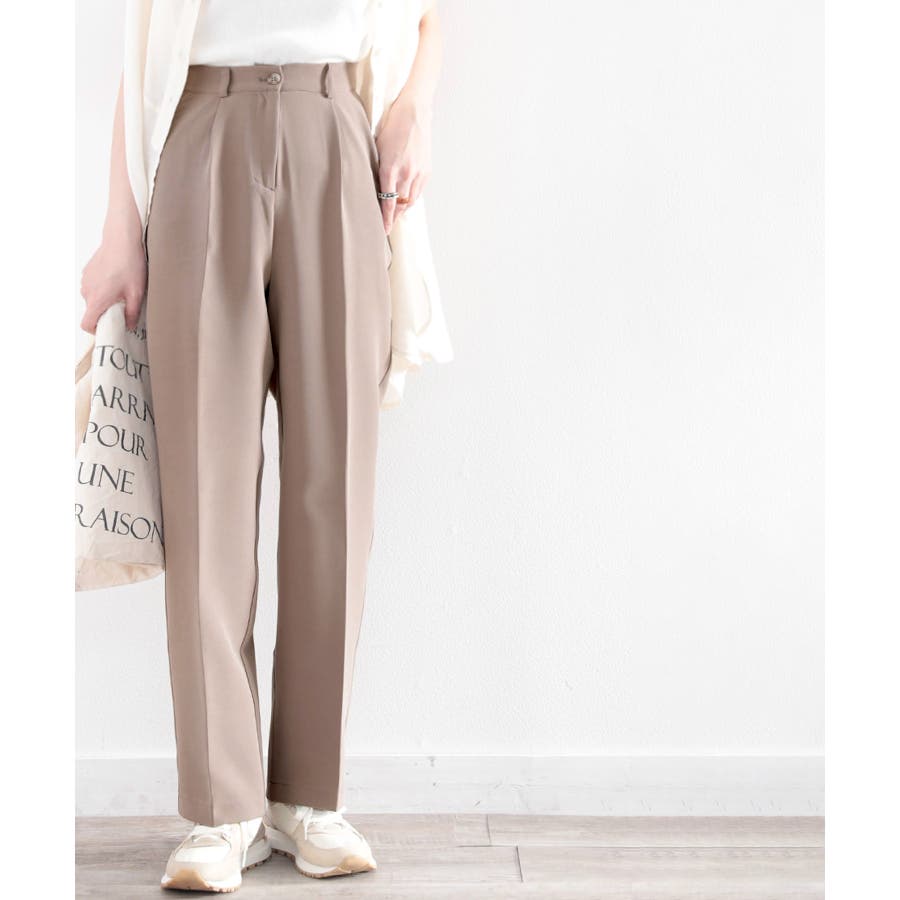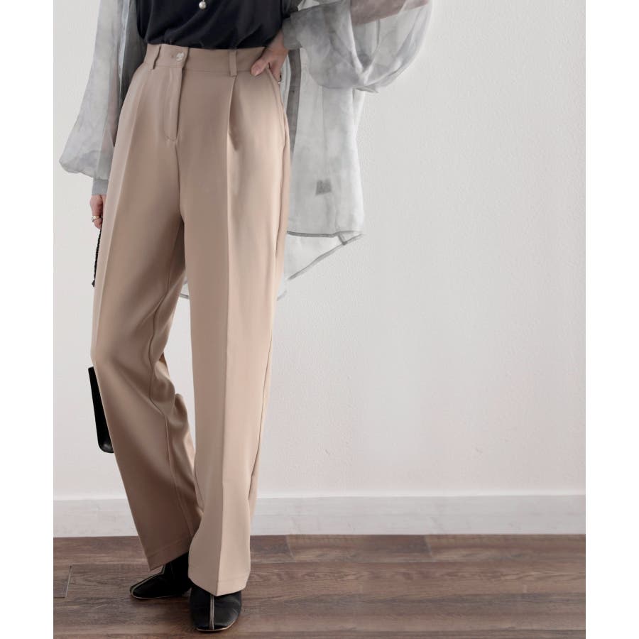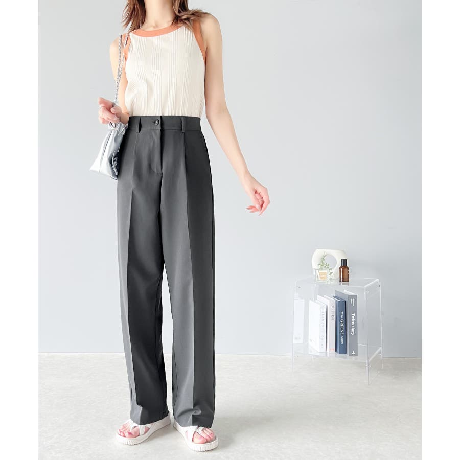 美脚魅せ、センタープレス。タック入りセミワイドパンツ