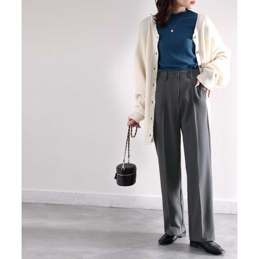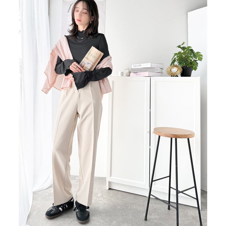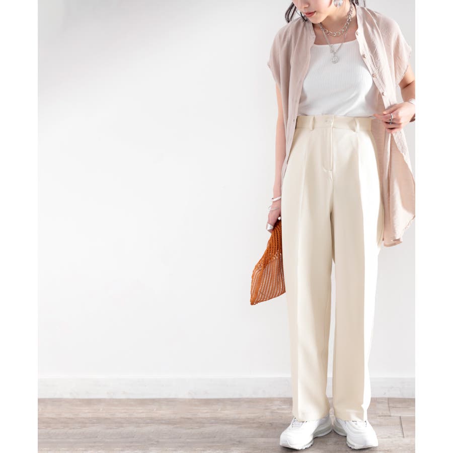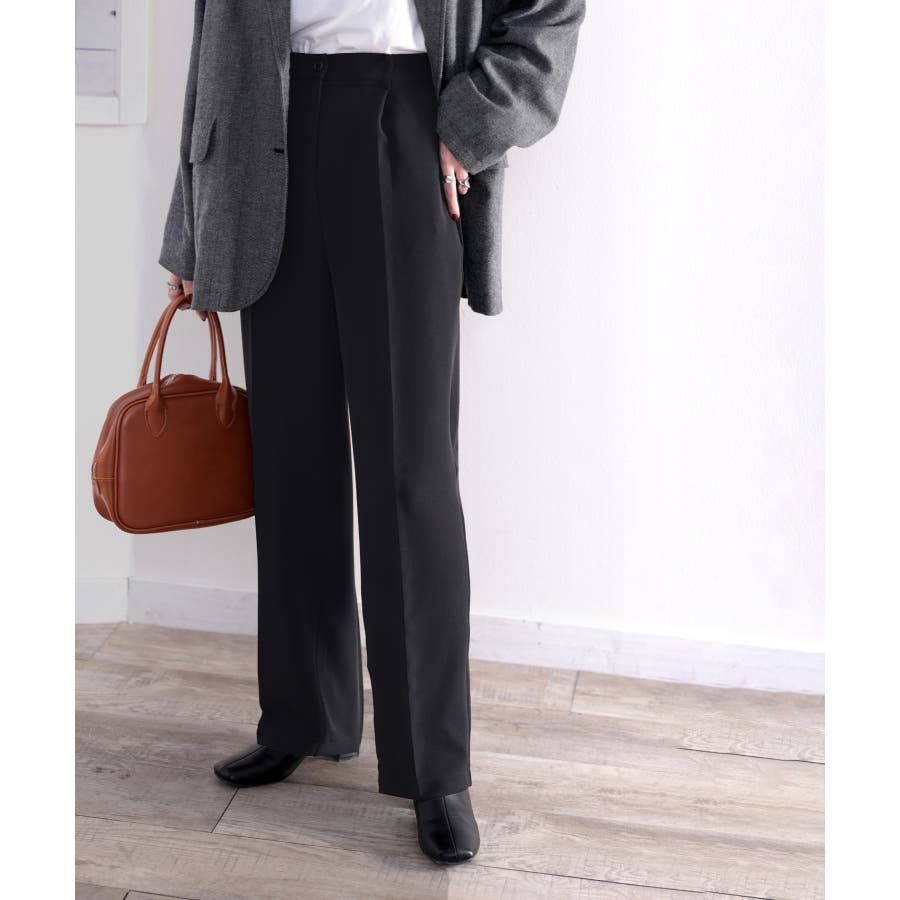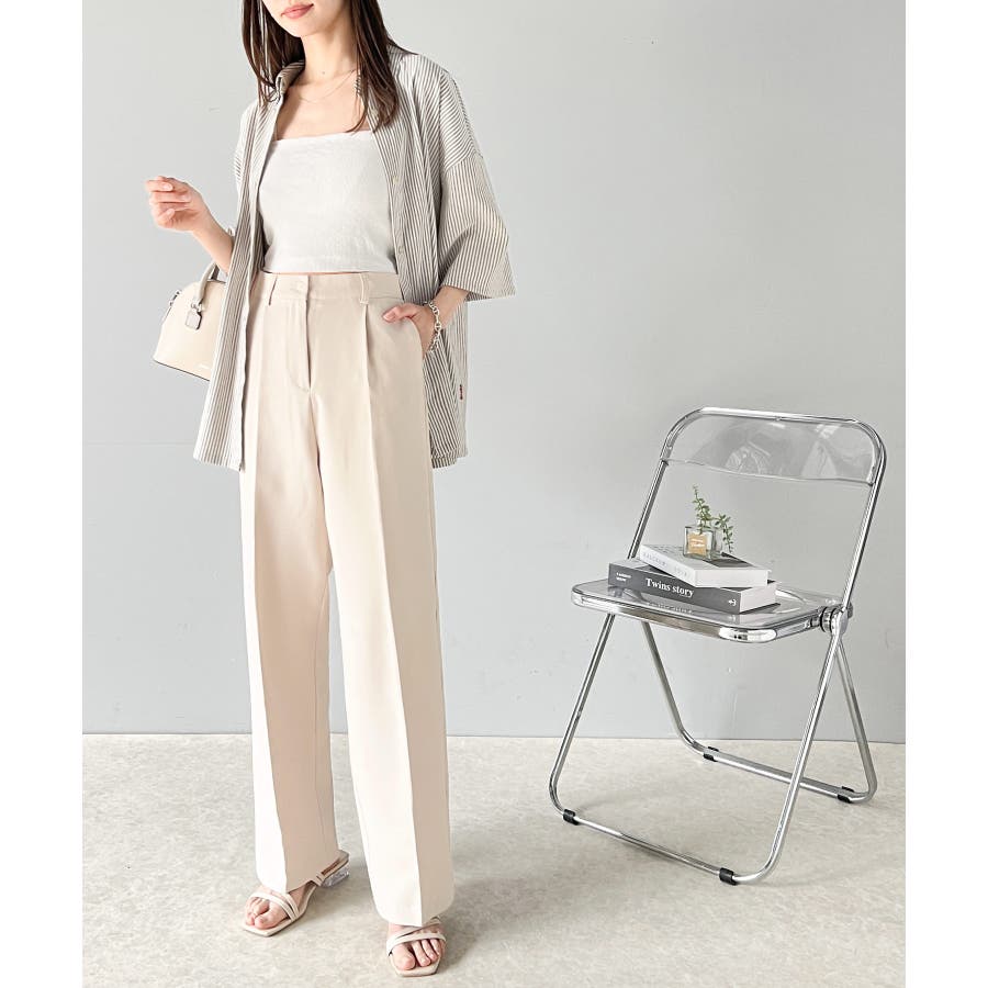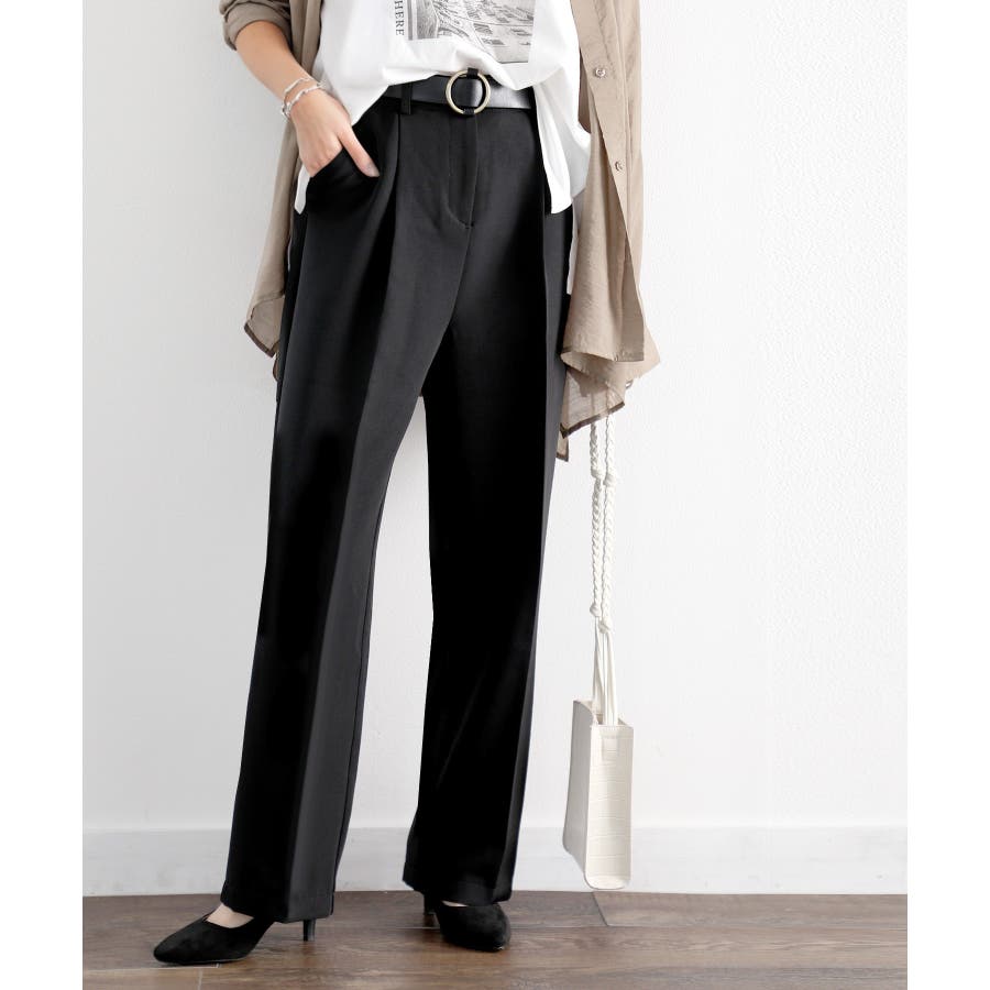 美脚魅せ、センタープレス。タック入りセミワイドパンツ