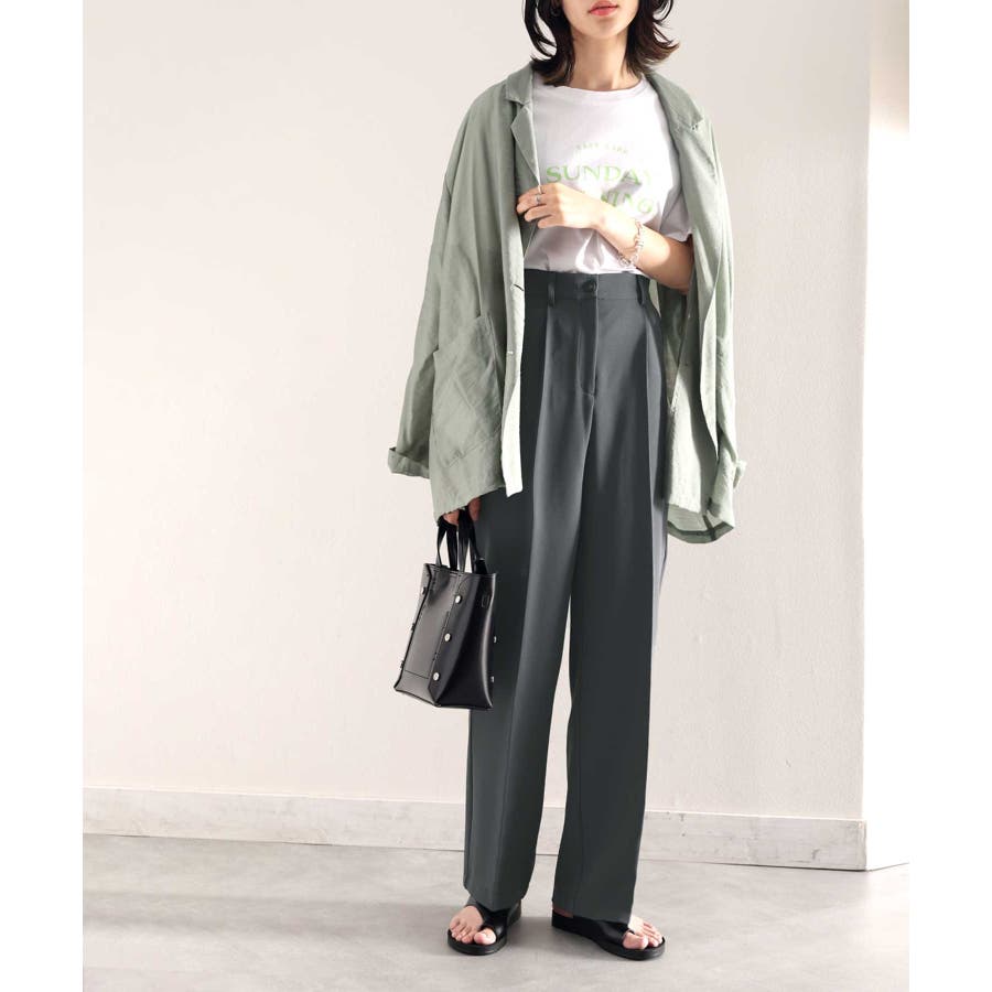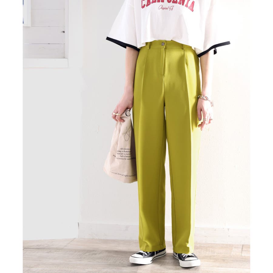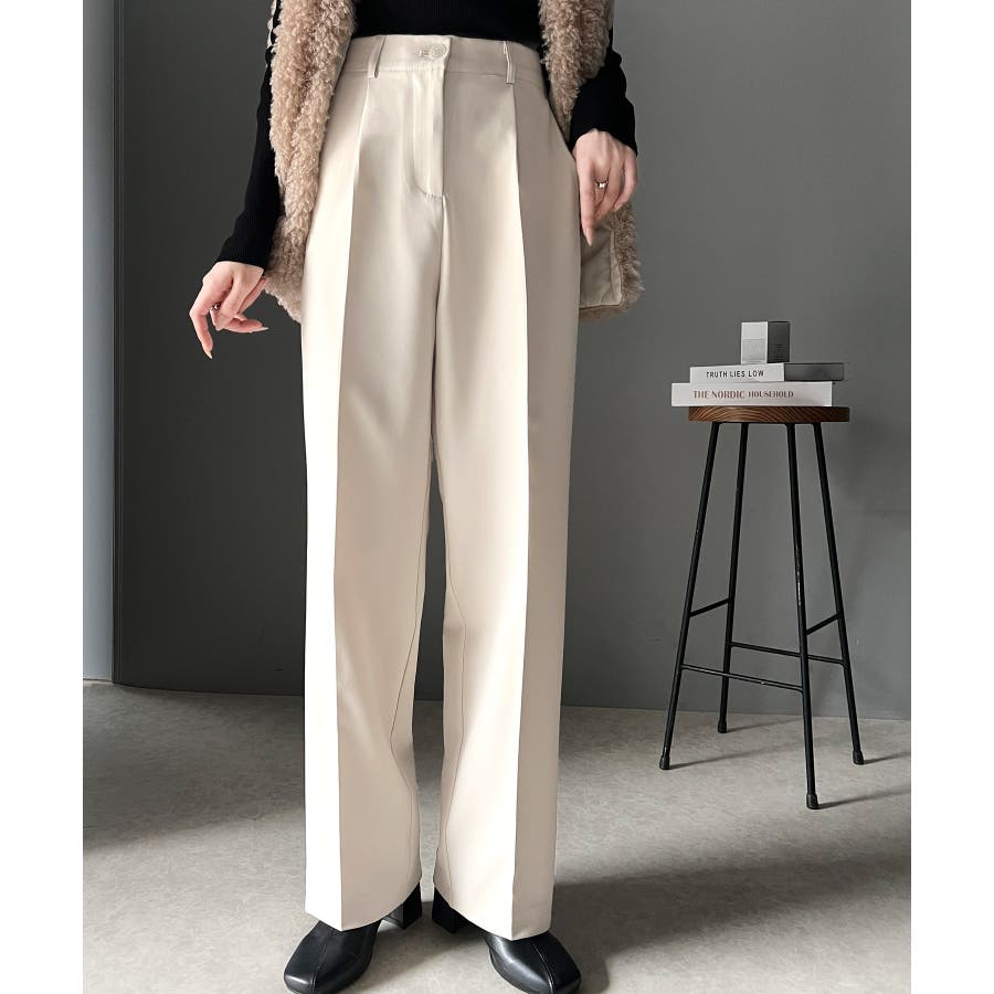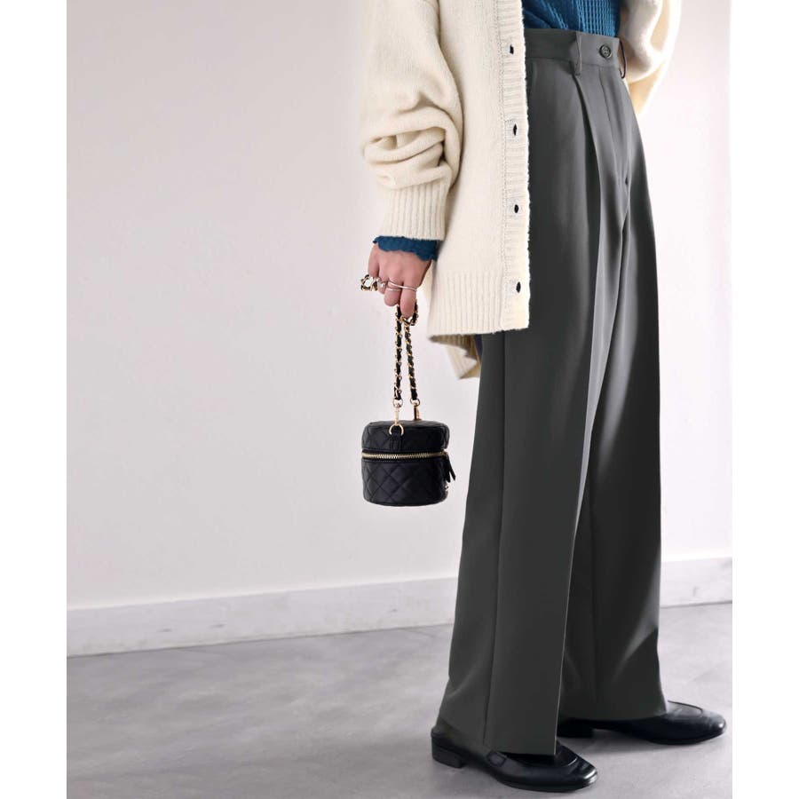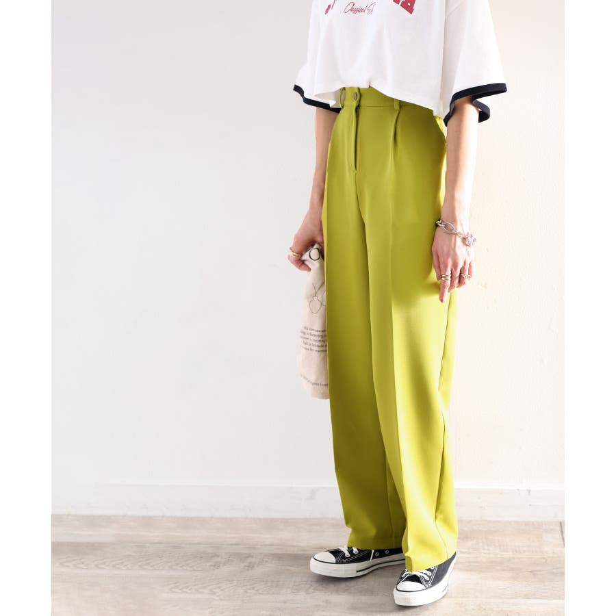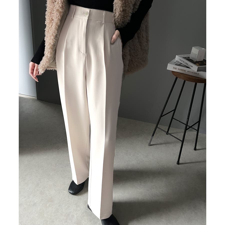 美脚魅せ、センタープレス。タック入りセミワイドパンツ