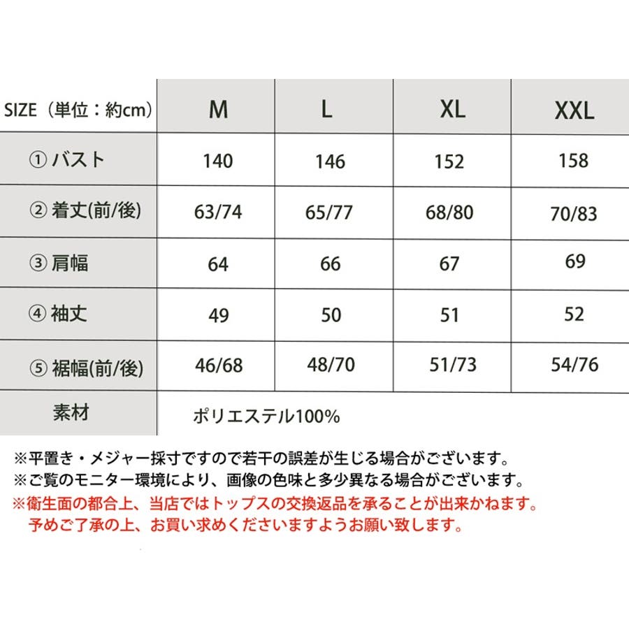 [XXLサイズ]バスト:158cm/着丈(前/後):70/83cm/肩幅:69cm/裾幅(前/後):52cm/裾幅(前/後):54/76cm