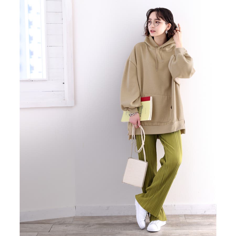 ビッグシルエット スリット入り無地プルオーバーパーカー