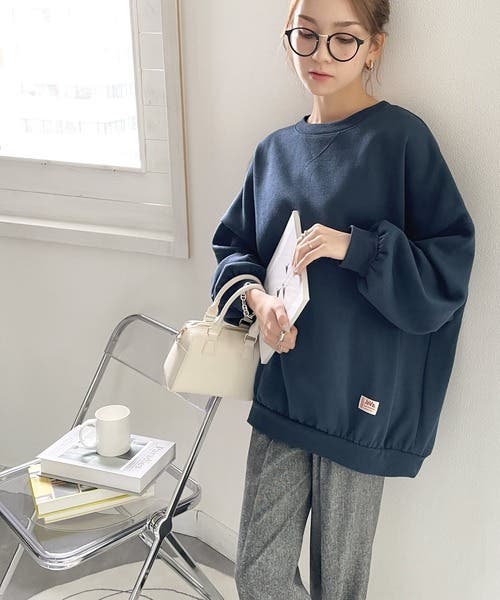 ボリューム袖 裏起毛ビッグシルエットトレーナー(長袖)