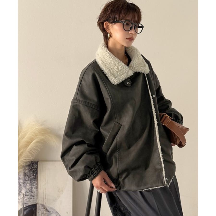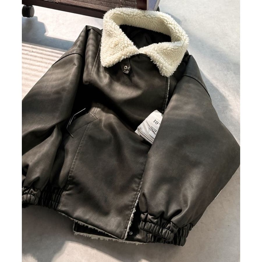 古着のB-3とライダースをMIXさせたデザインがポイントの合皮ジャケット。