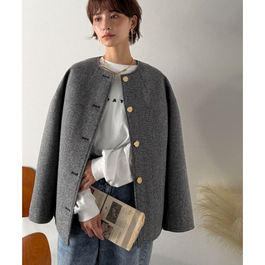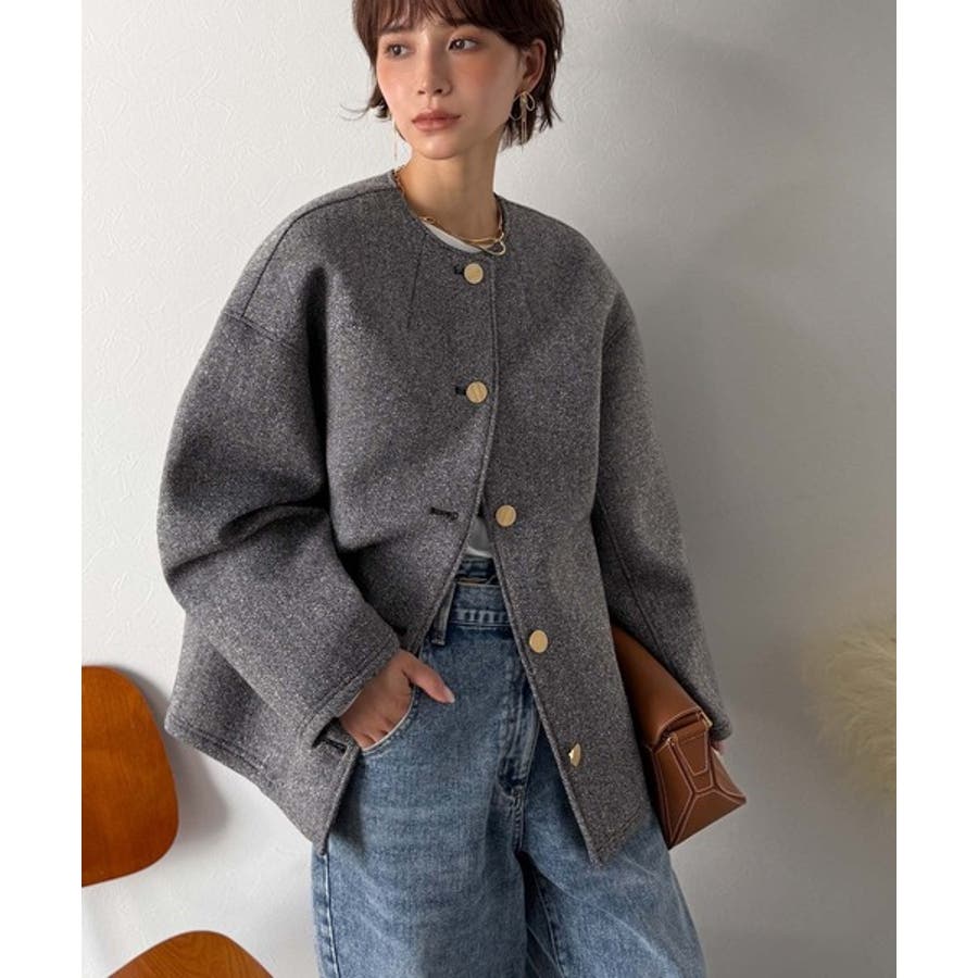丸みのあるフォルムが女性らしさを引き立て、羽織るだけでこなれ感を演出。