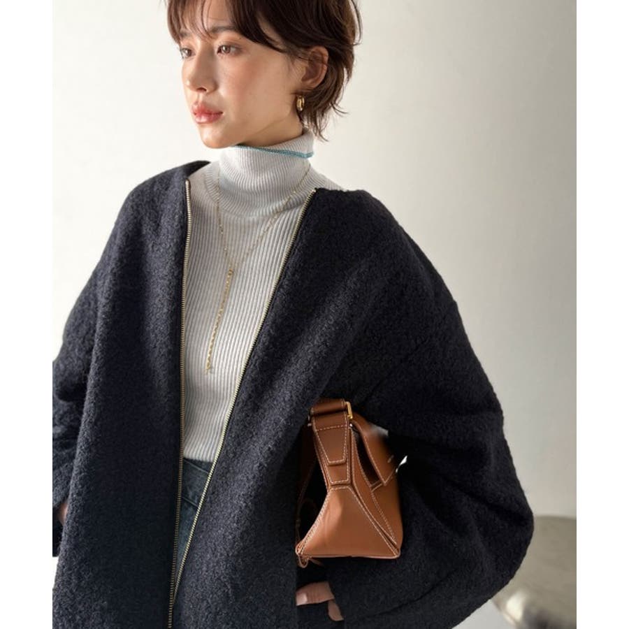 すっきり見えるノーカラーで顔まわりを明るく華やかに見せてくれます♪