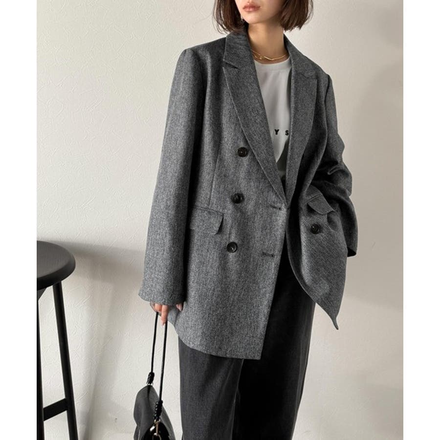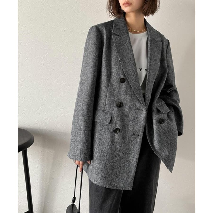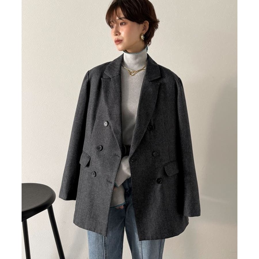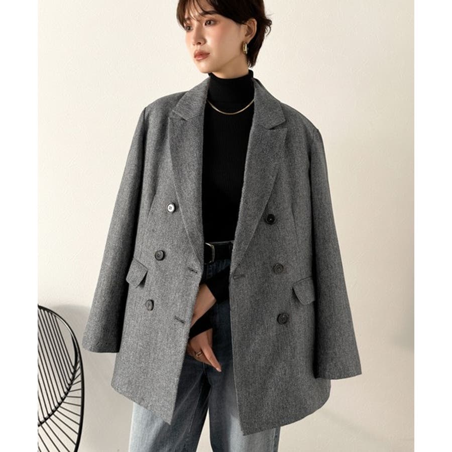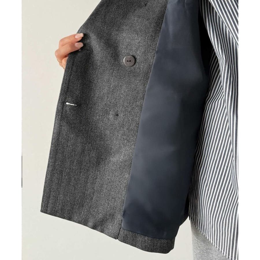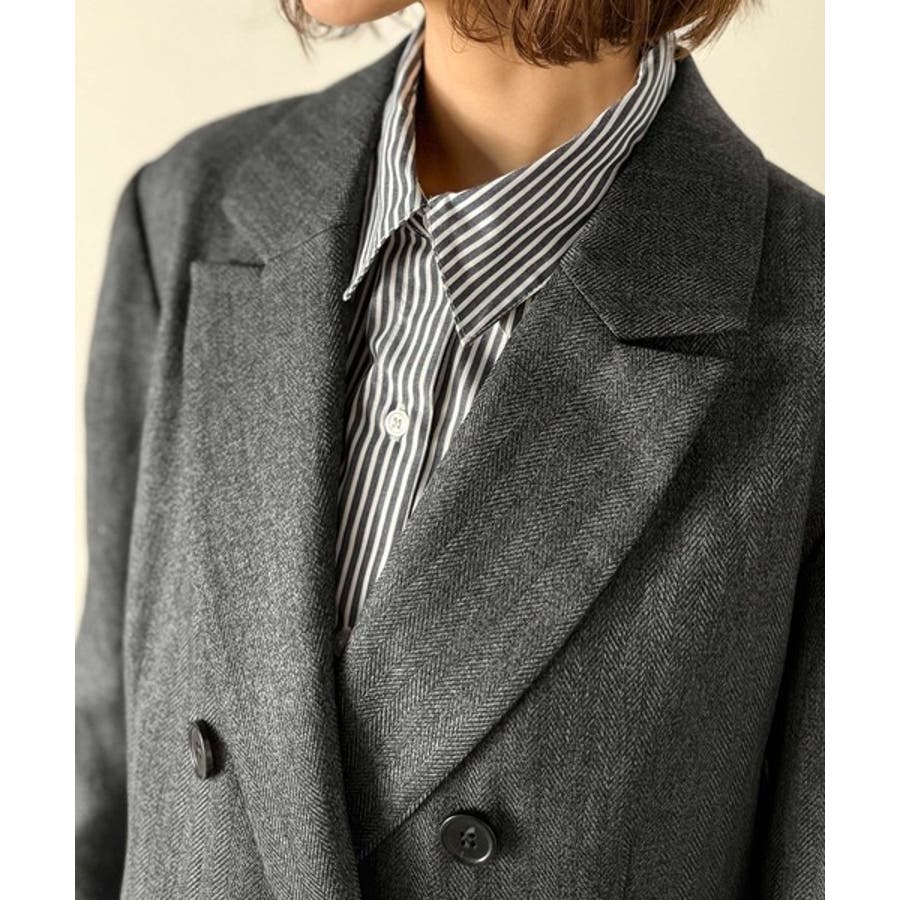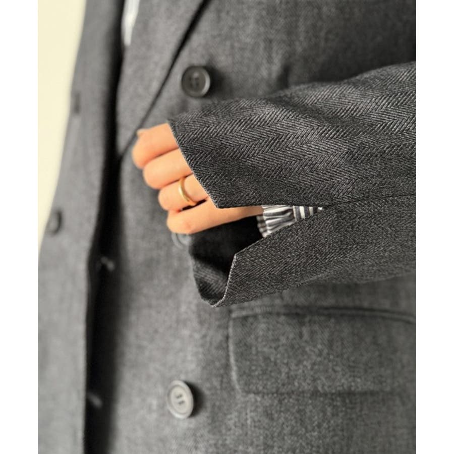 シックなヘリンボーン素材を活かした、3段ボタンダブルジャケット。