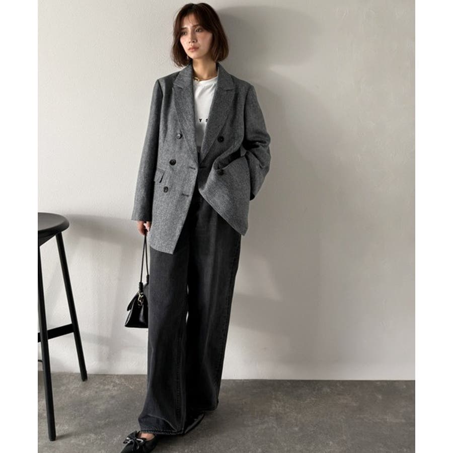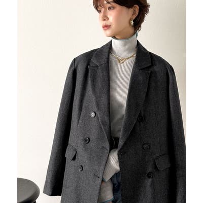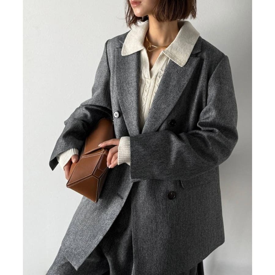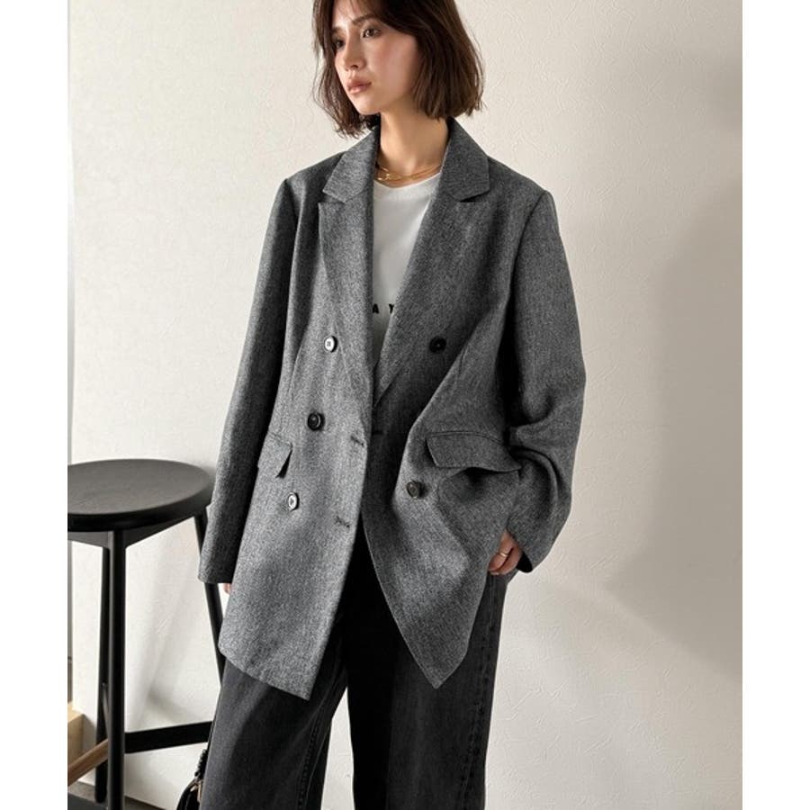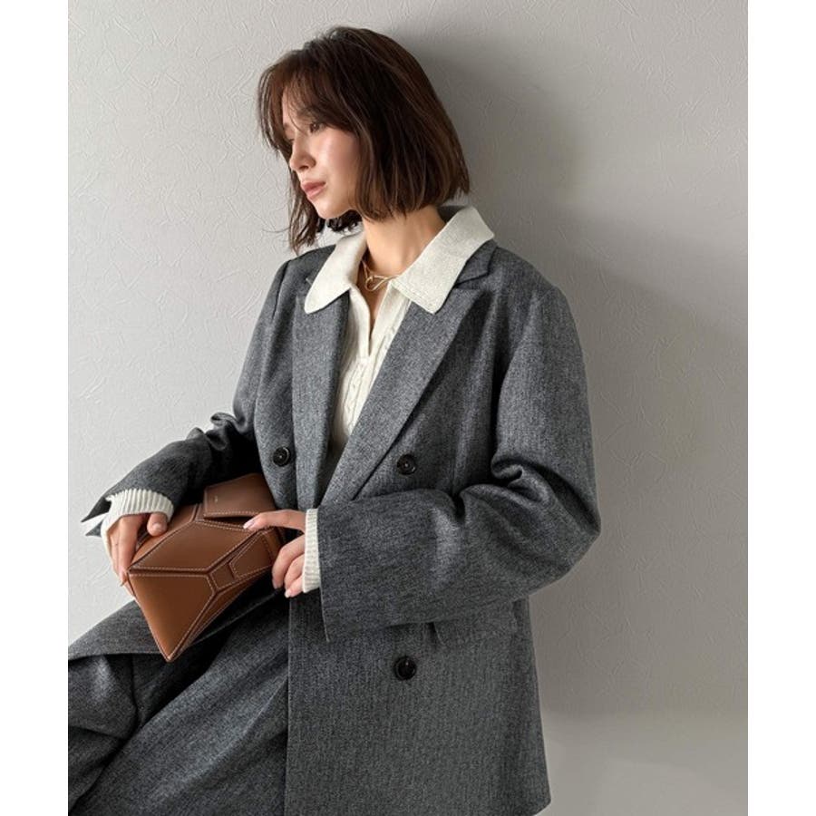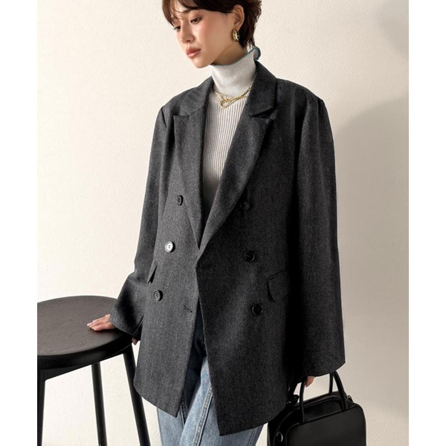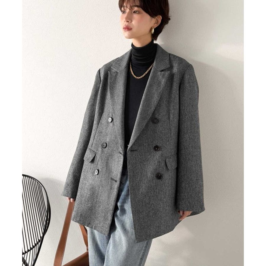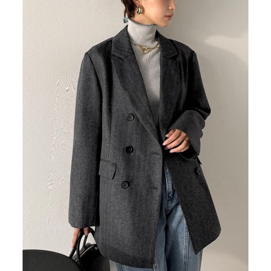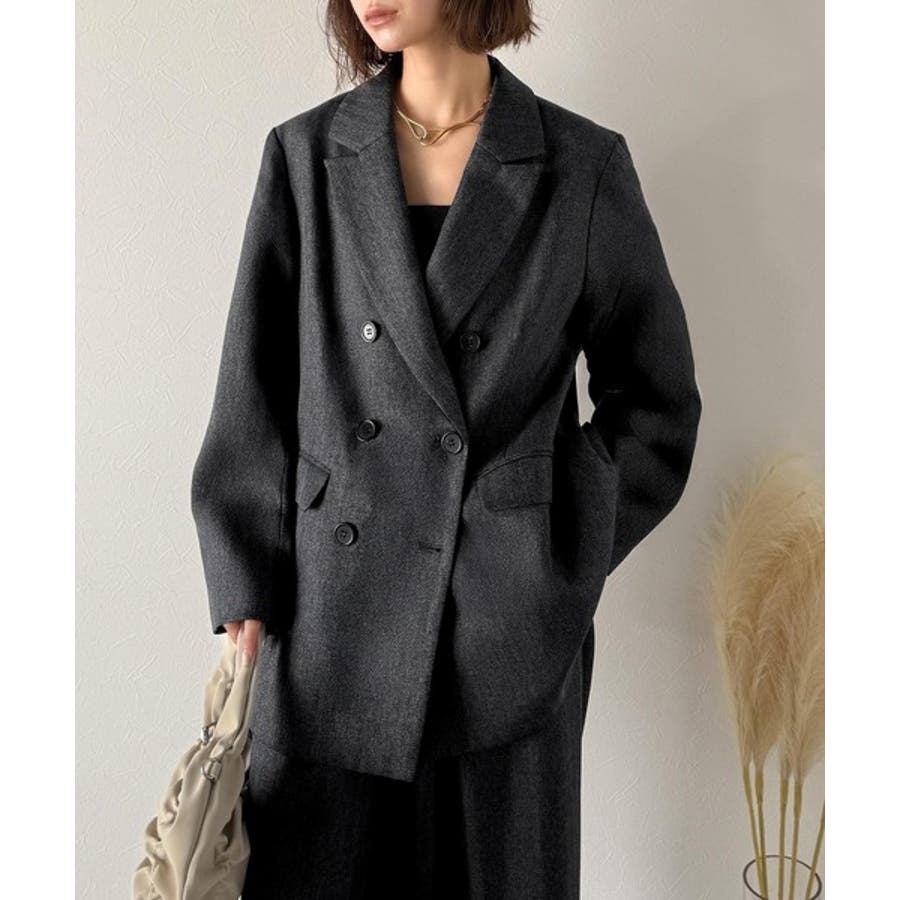 シックなヘリンボーン素材を活かした、3段ボタンダブルジャケット。