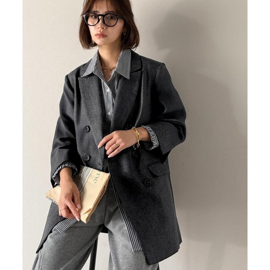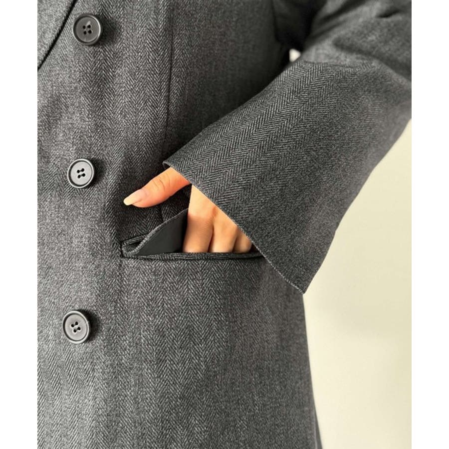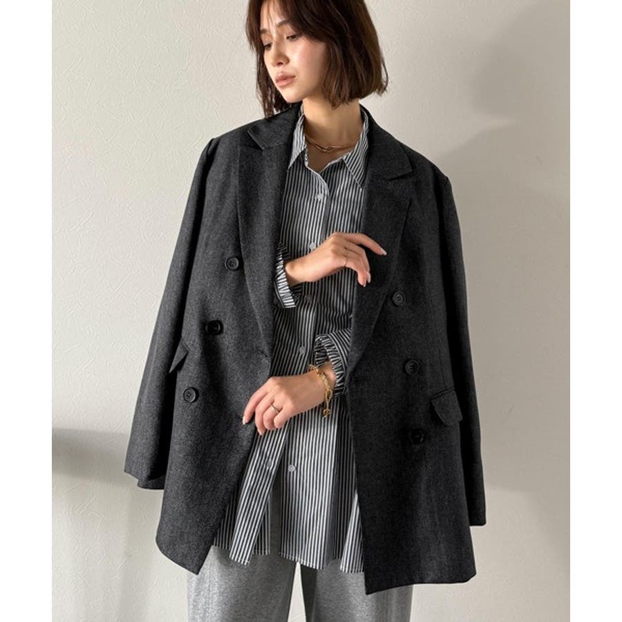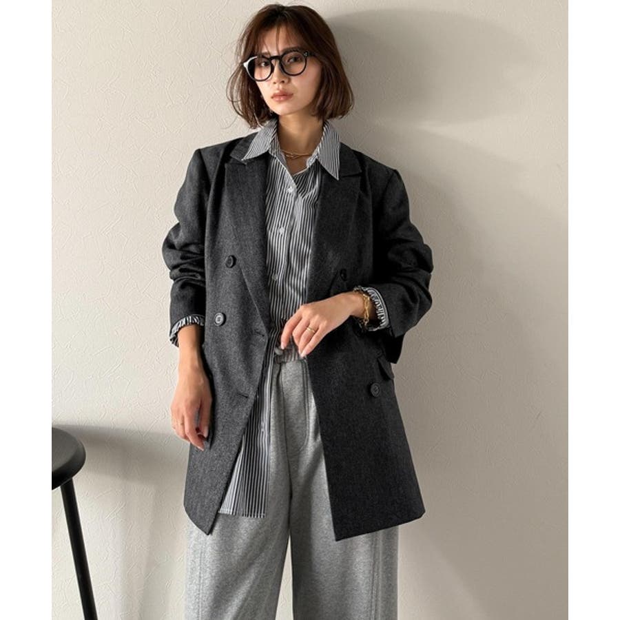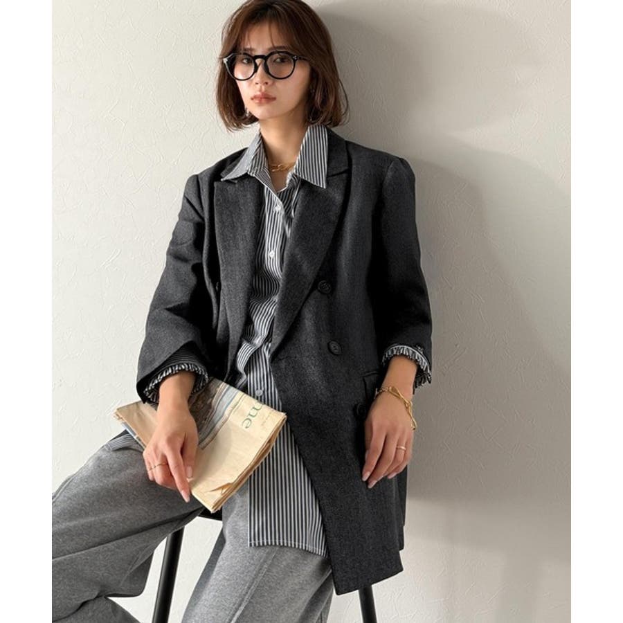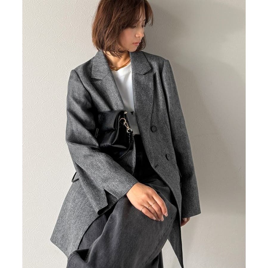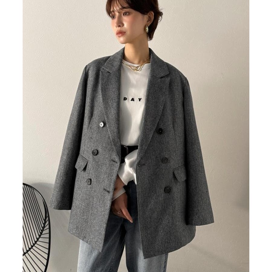 シックなヘリンボーン素材を活かした、3段ボタンダブルジャケット。