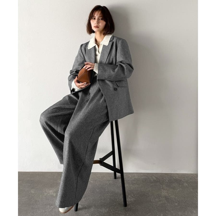 同素材のパンツと合わせれば、秋冬に映える上品なセットアップスタイルが完成します。