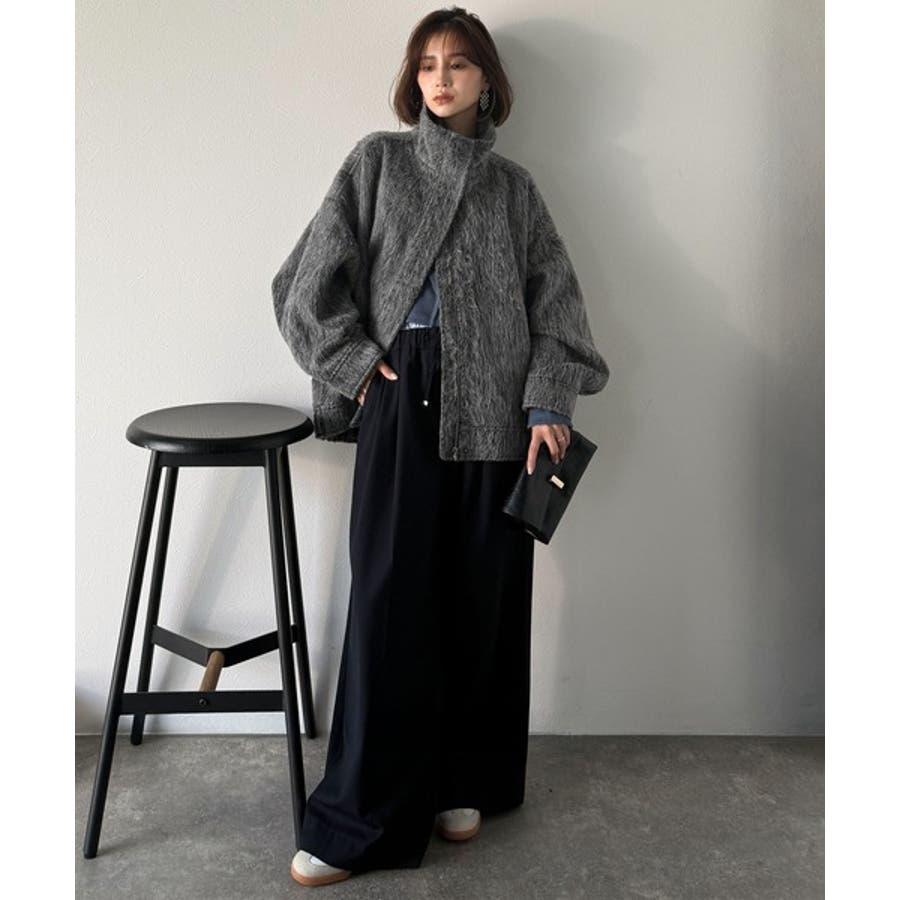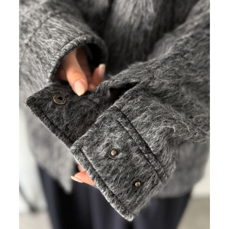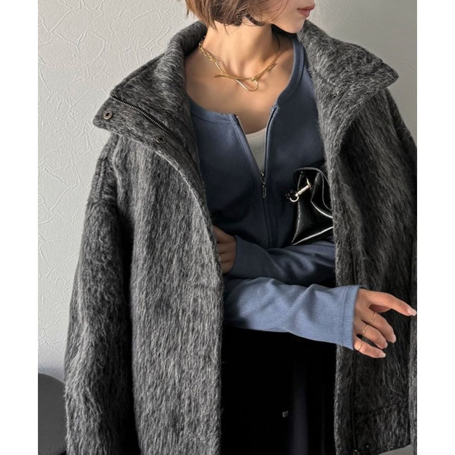 柔らかな毛足のある素材が、やさしく上品な印象を引き立てながら、しっかりとした暖かさも兼ね備えた、この秋冬にぴったりの1枚。