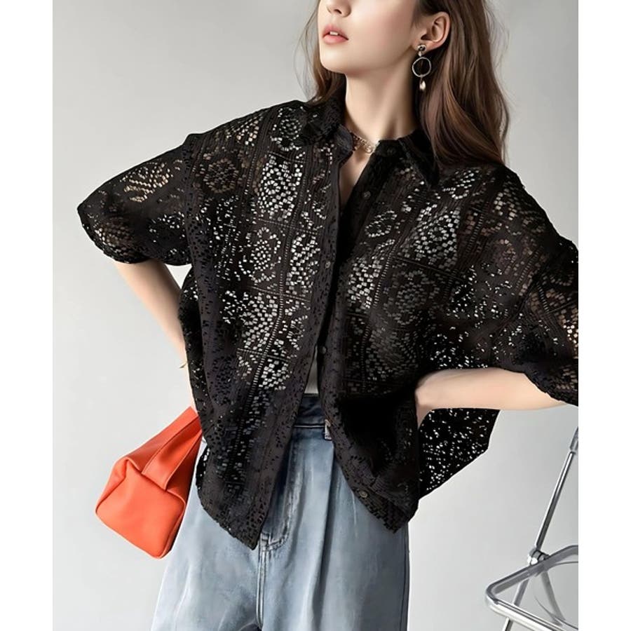 レトロなシアー刺繍が大人のカジュアルコーデにぴったりな1枚。