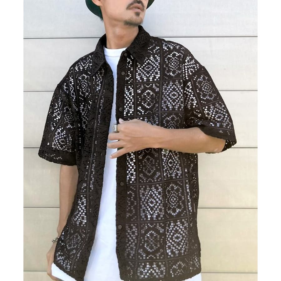 《JAVAジャバ 別注》クールにキマル。ブロックレースブラウス