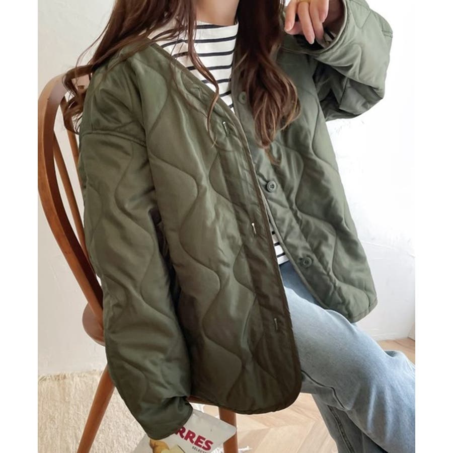 カーキのライナーは、パイピングが配色になっており、よりミリタリーテイストを楽しめます♪