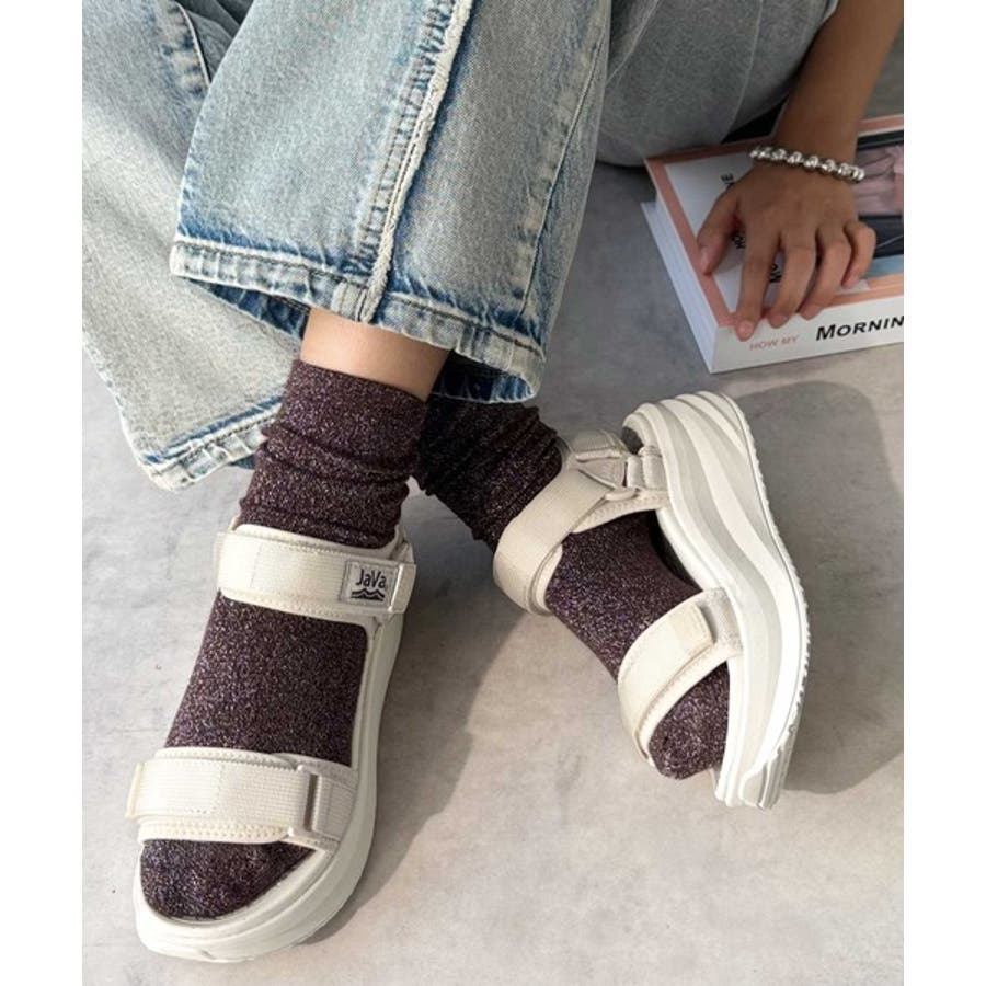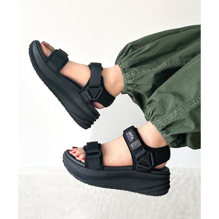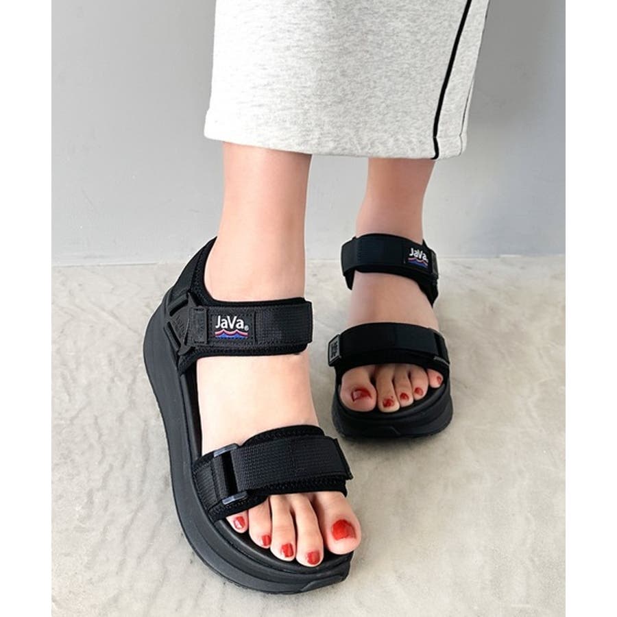 《Javaジャバコラボ》厚底ベルクロスポーツサンダル ストラップあり