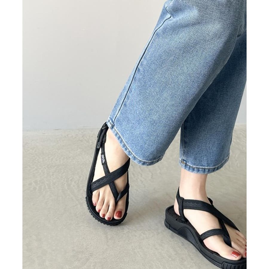 大人のこなれ感は足元から。クロスストラップゴムホールド機能付きサンダル