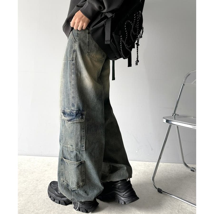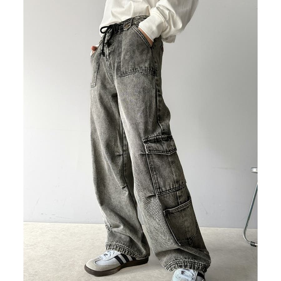 トレンド感のあるカーゴデザインのデニムパンツです。