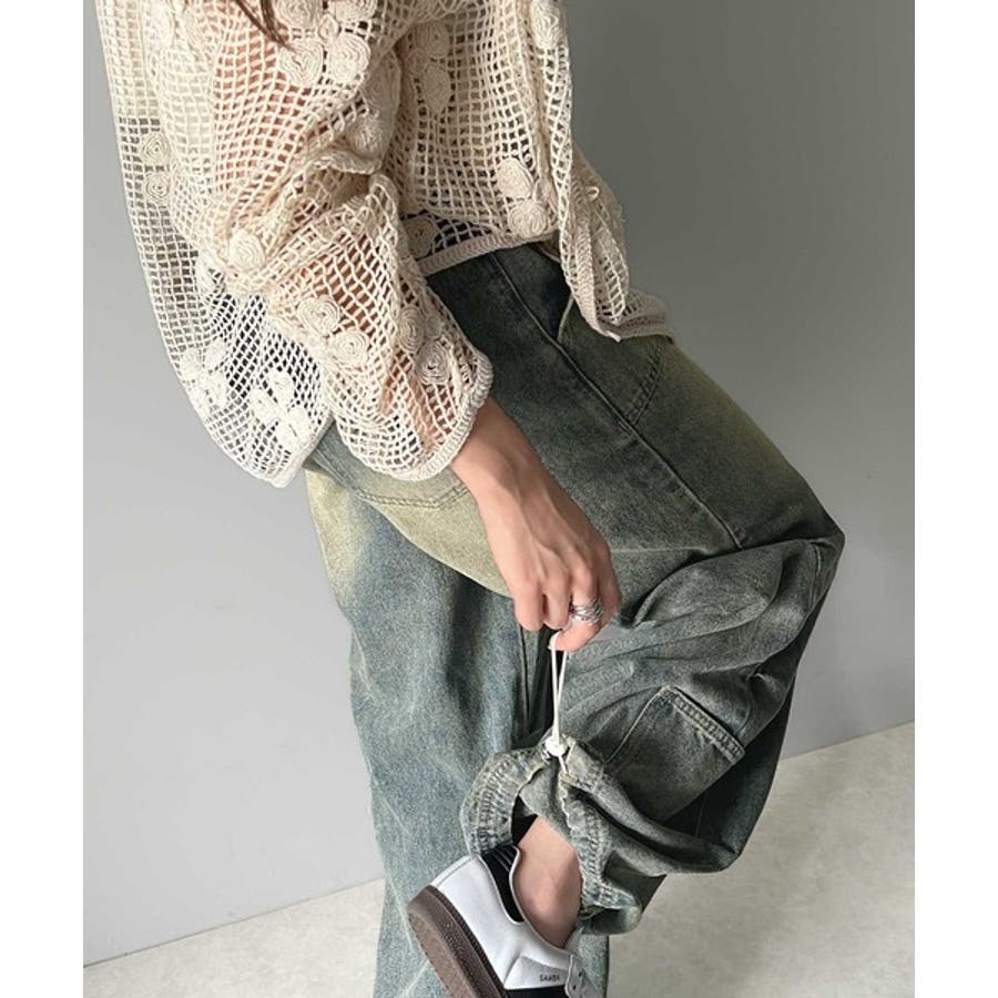 《Javaジャバコラボ》旬なこなれ感。ヴィンテージ加工裾ドロストワイドデニム