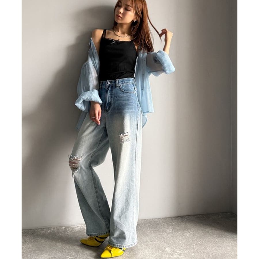 《メンズもレディースもお揃いで着れちゃう、2トーンブリーチ切り替えダメージデニム》