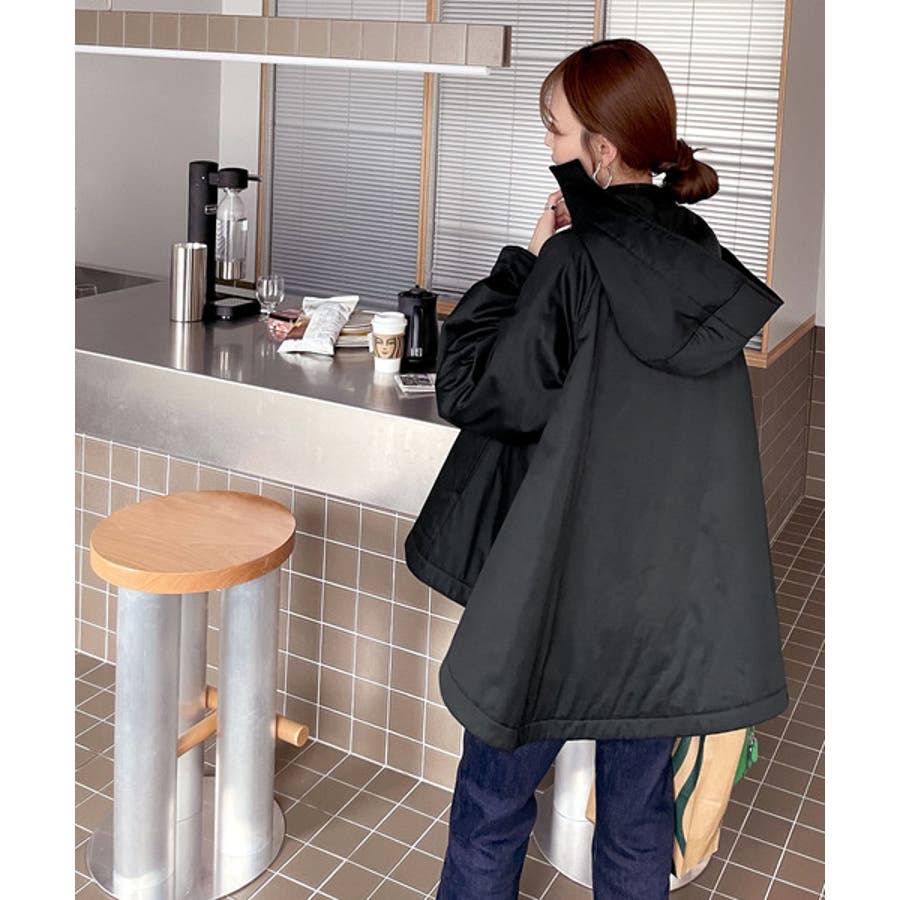 おめかし感100%。中綿入りラウンドヘムフレアマウンテンパーカー