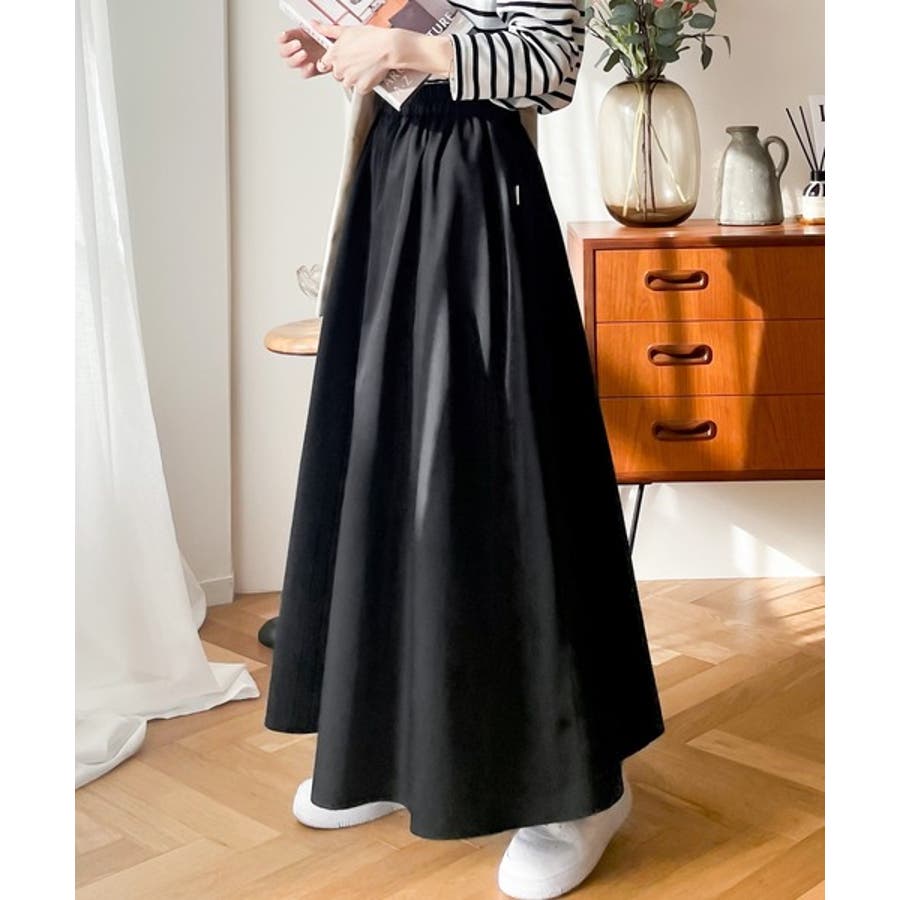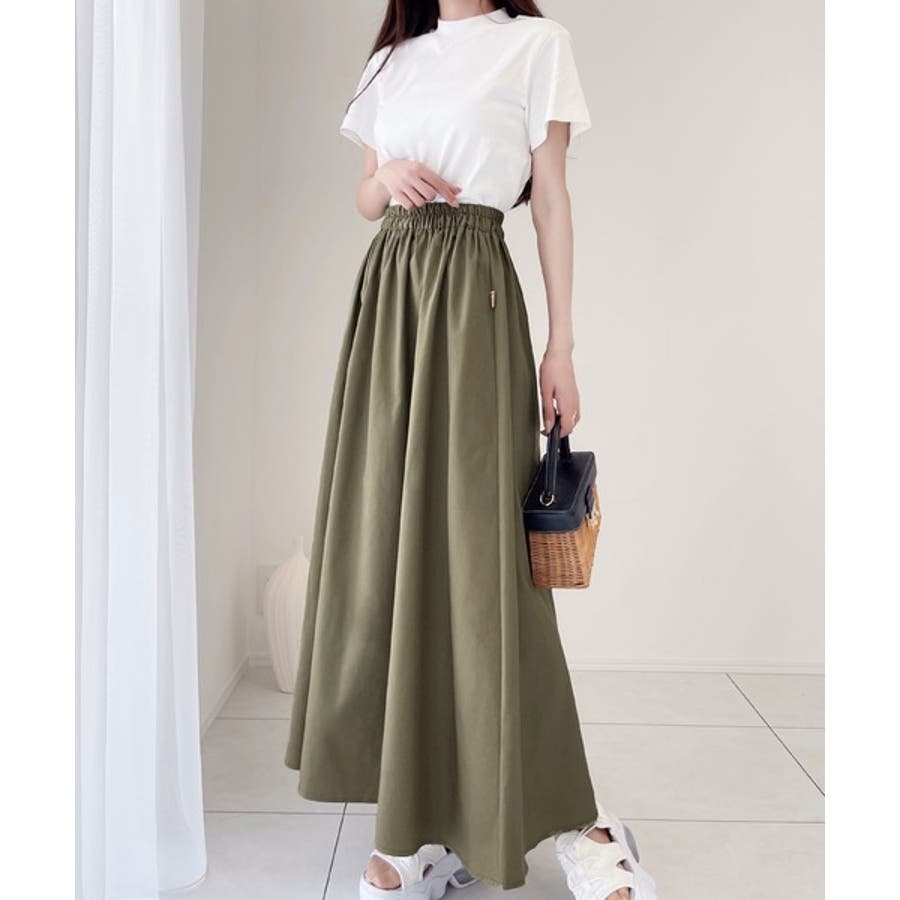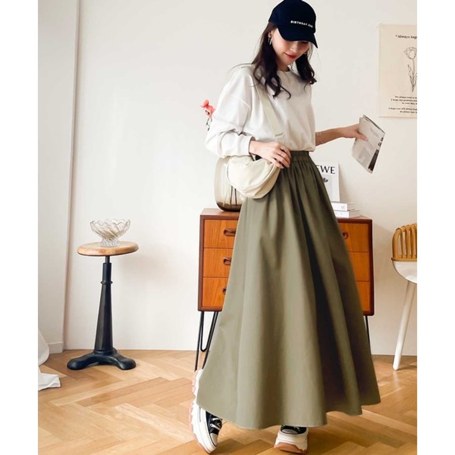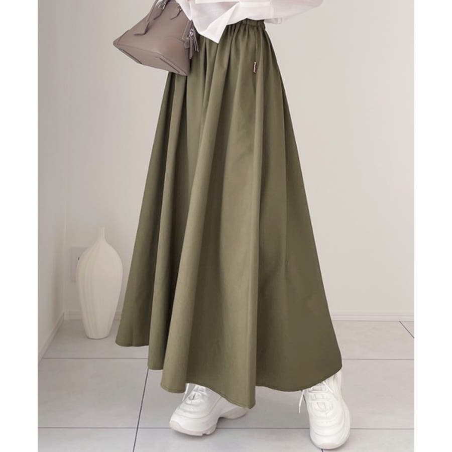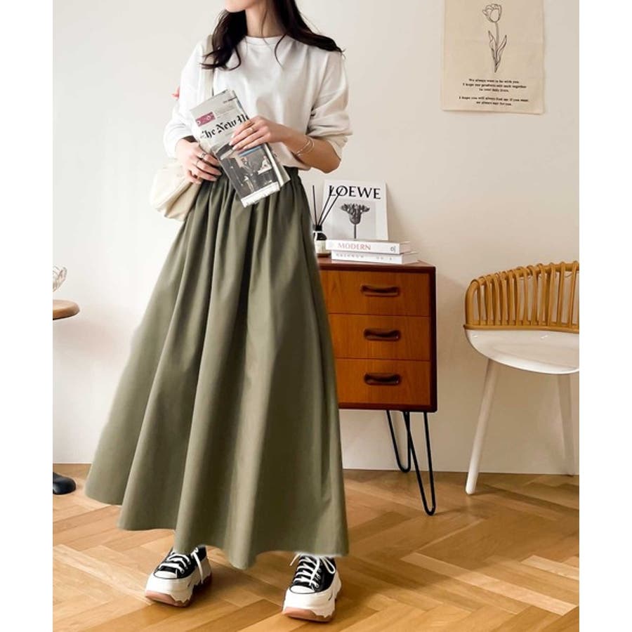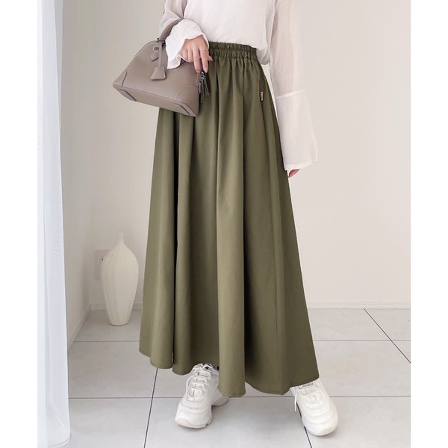 オフィスにもぴったりのロング丈で、ウエストゴムで楽ちんな着心地◎