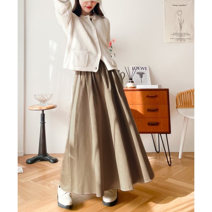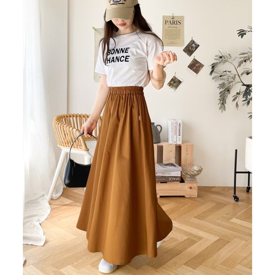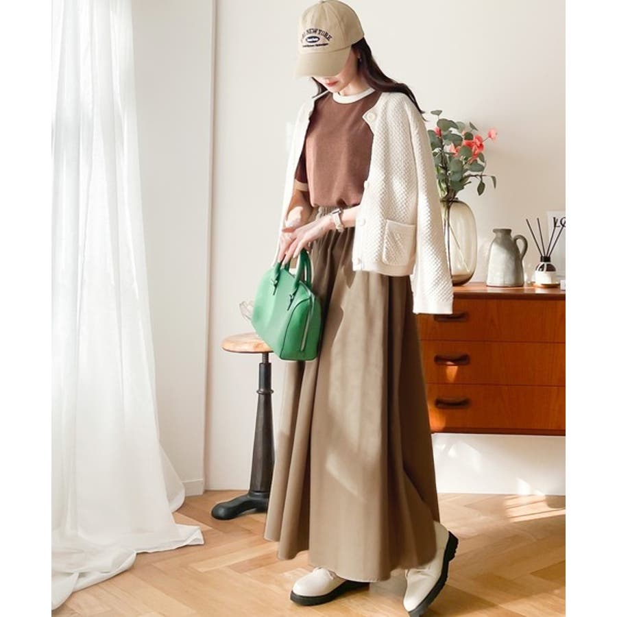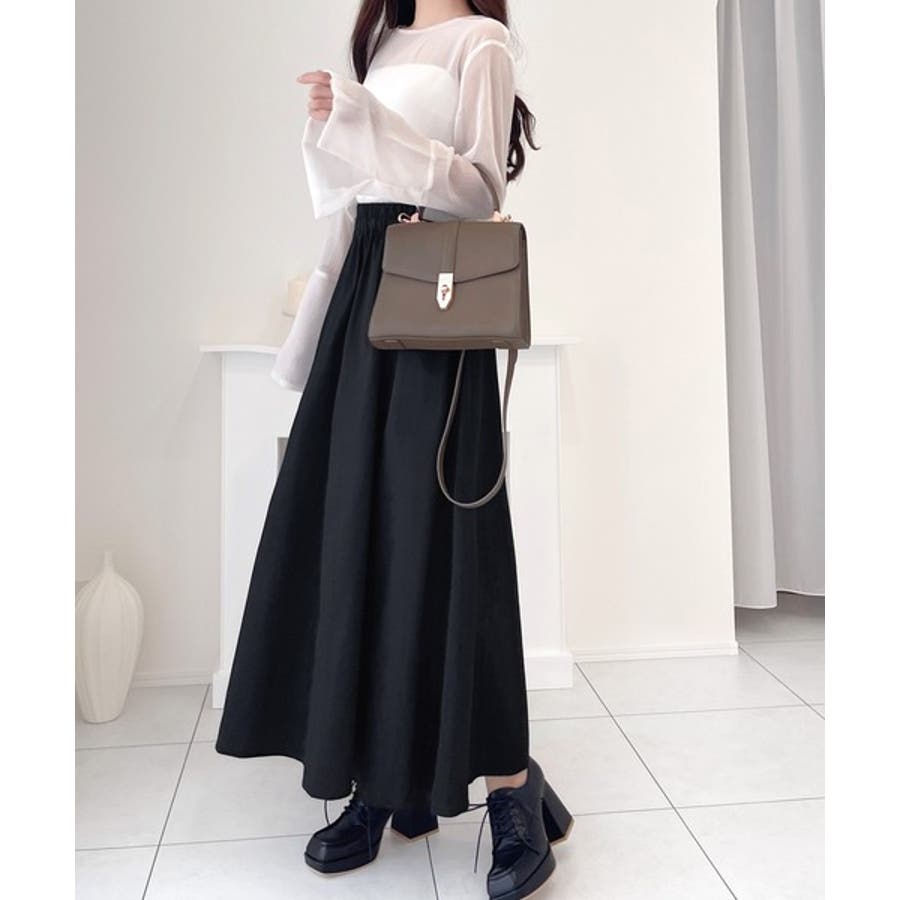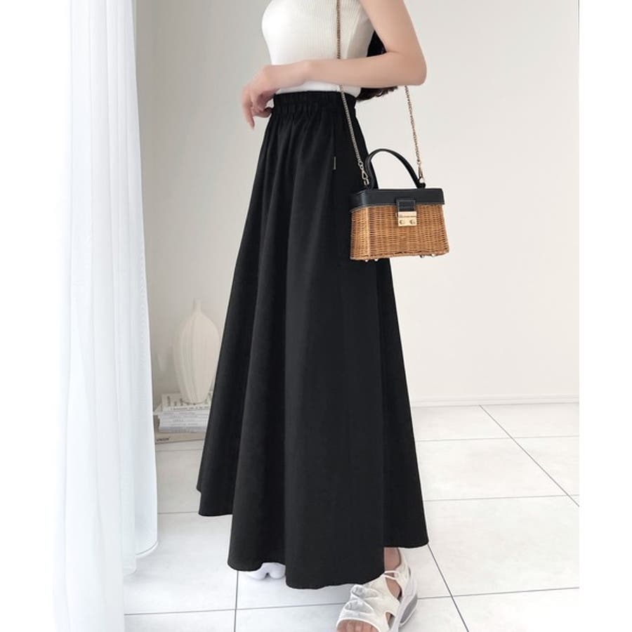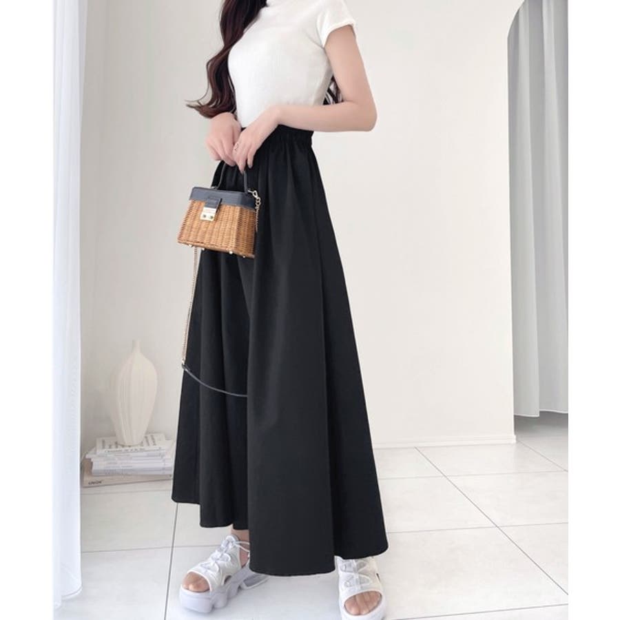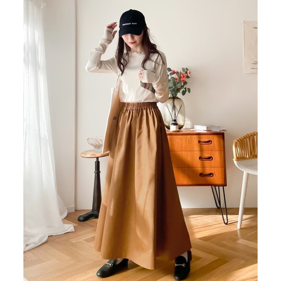 オフィスにもぴったりのロング丈で、ウエストゴムで楽ちんな着心地◎