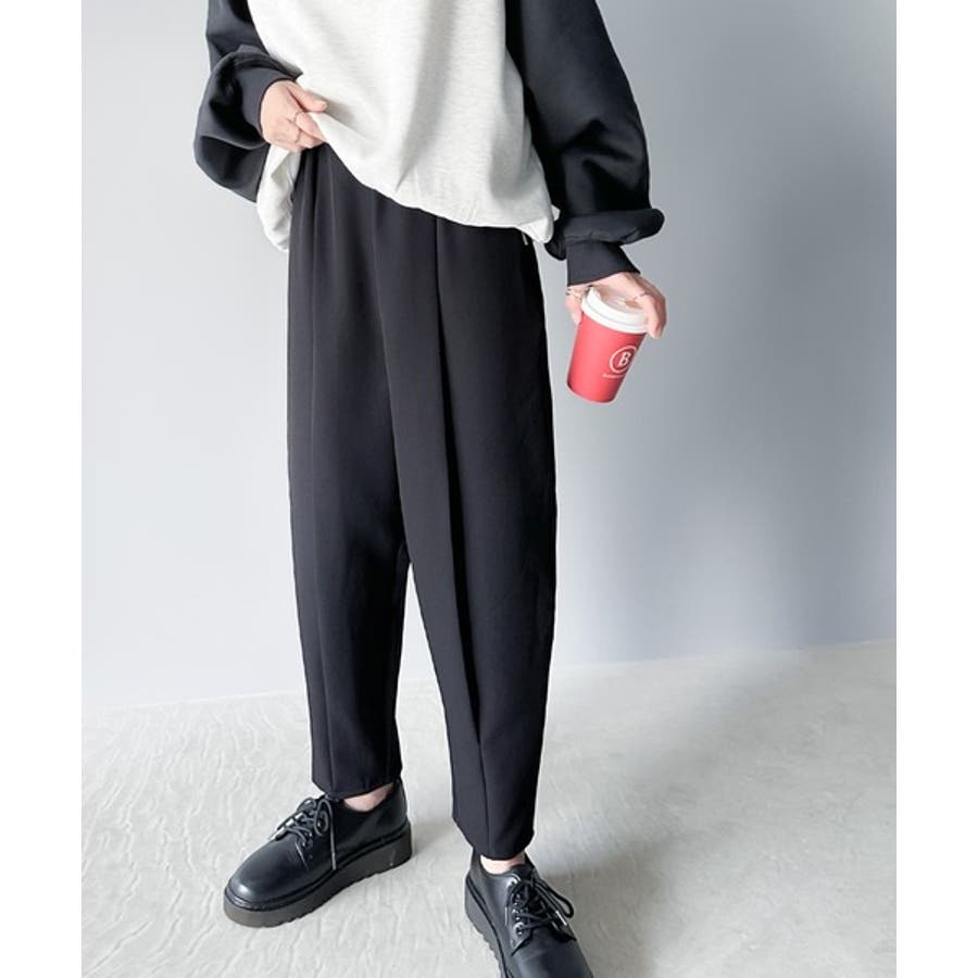 ウエストから裾まで入ったタックがポイントのバナナパンツ。
