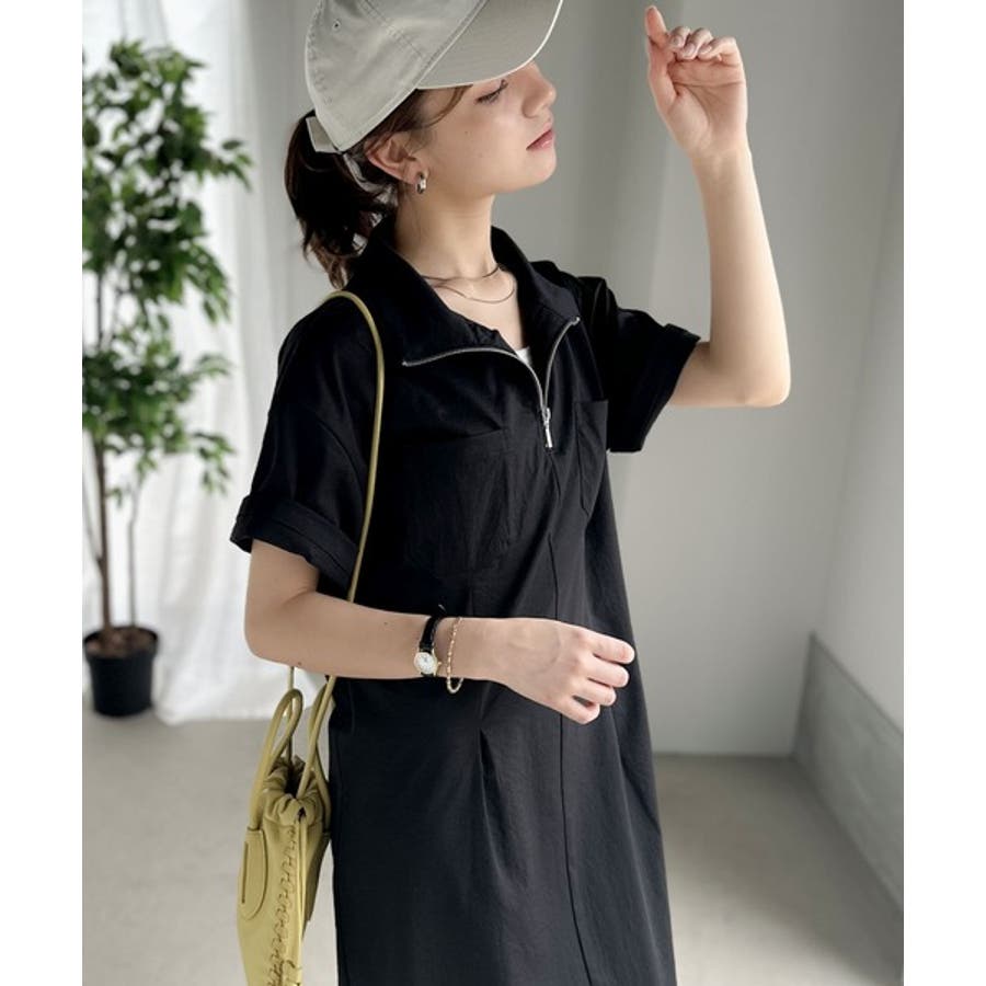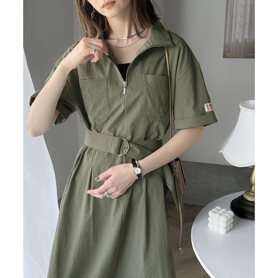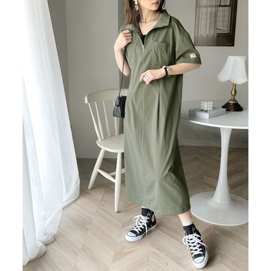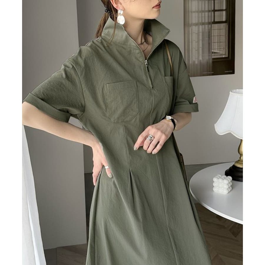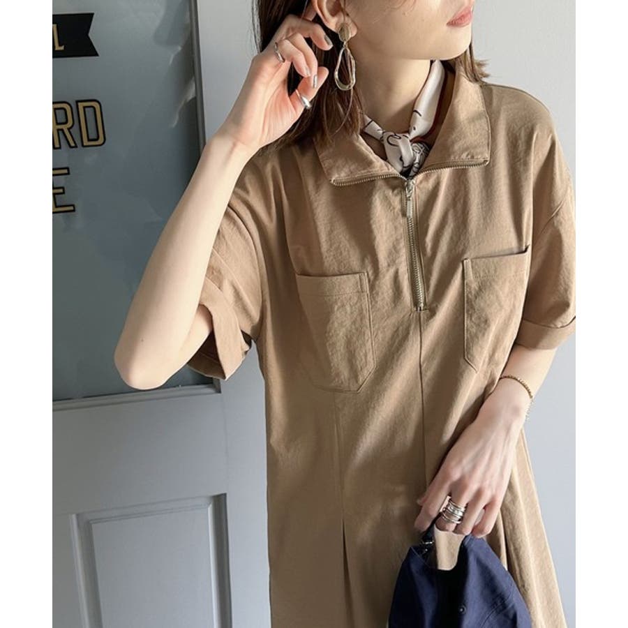 ハーフジップと胸ポケットのワークテイストが今季らしい1枚で決まる主役級ワンピース。
