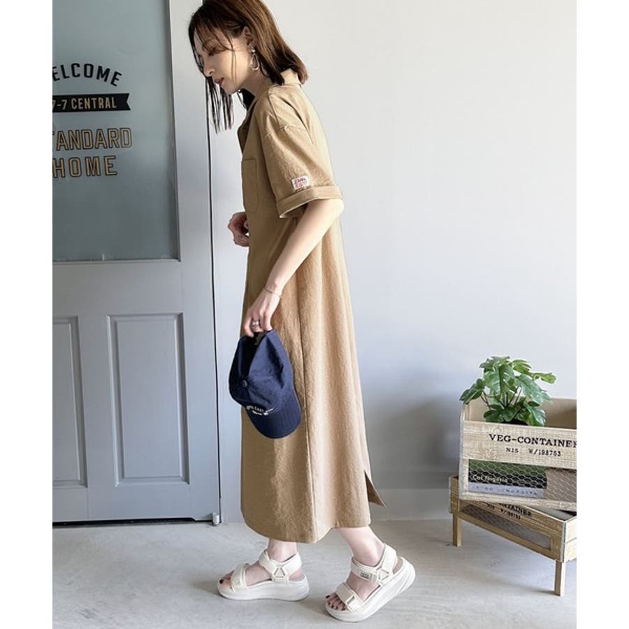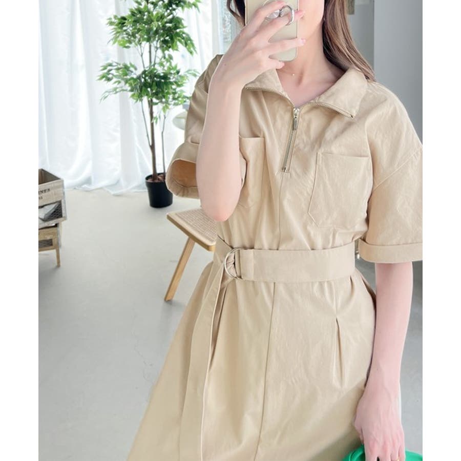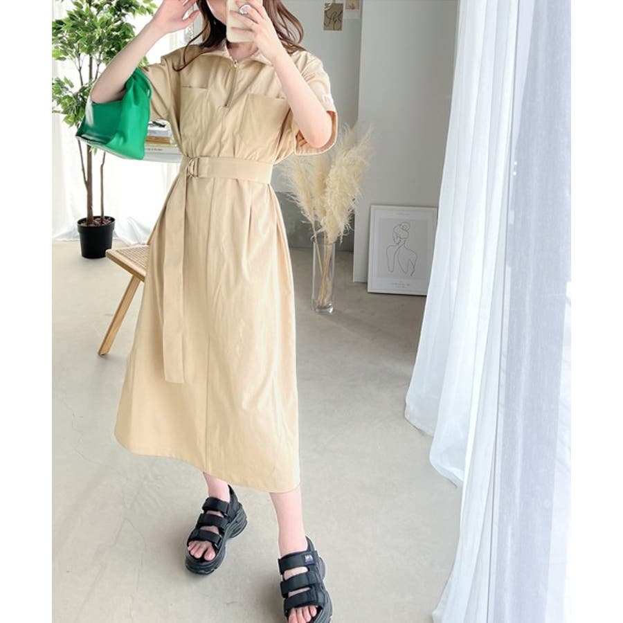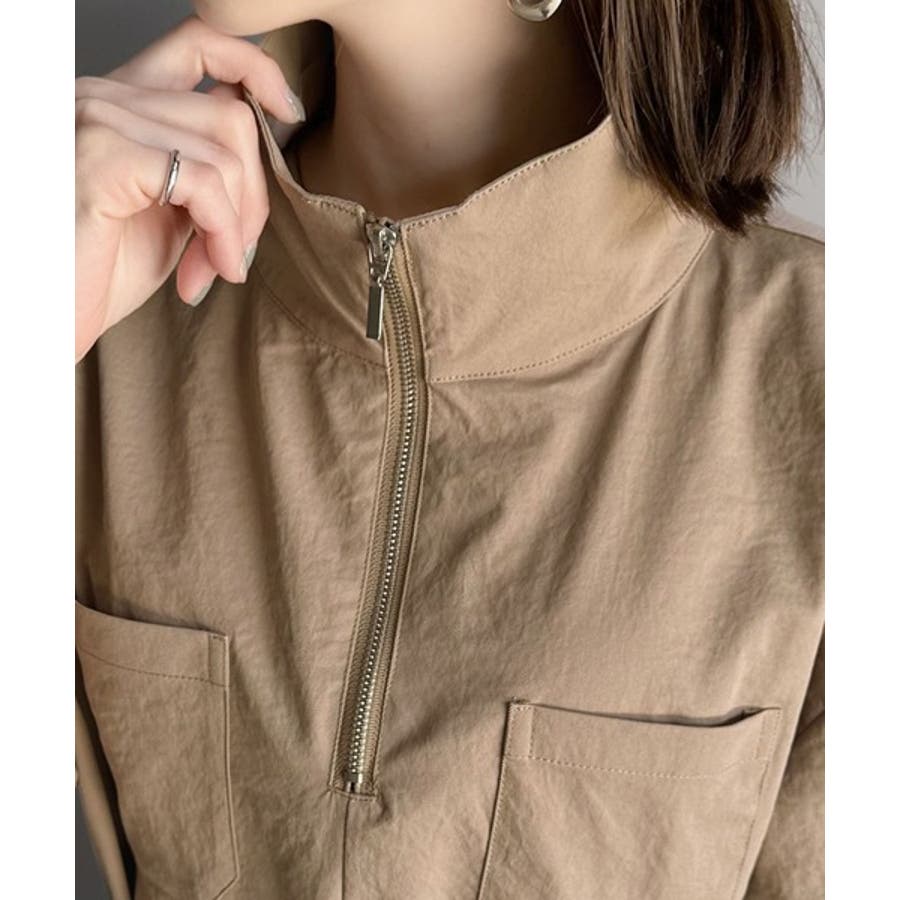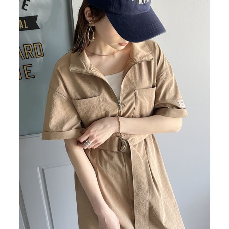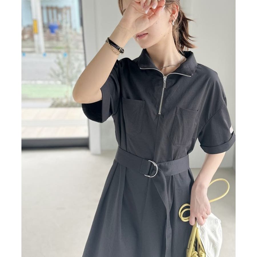 ハーフジップと胸ポケットのワークテイストが今季らしい1枚で決まる主役級ワンピース。