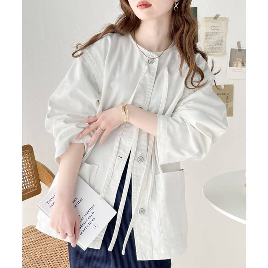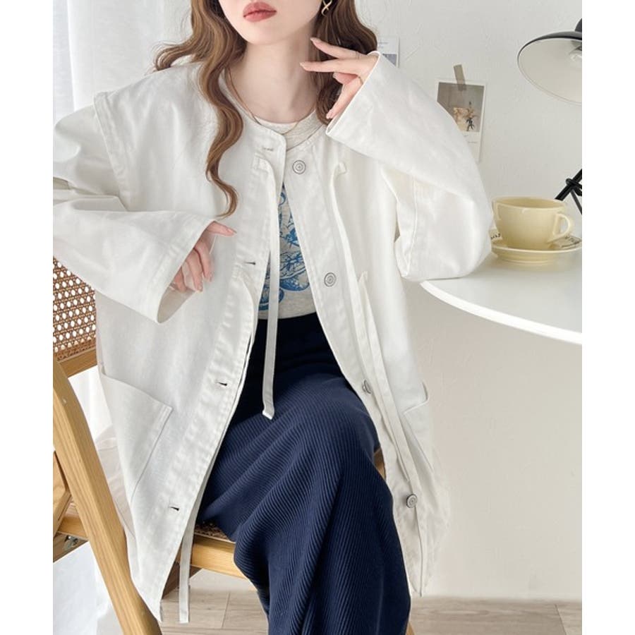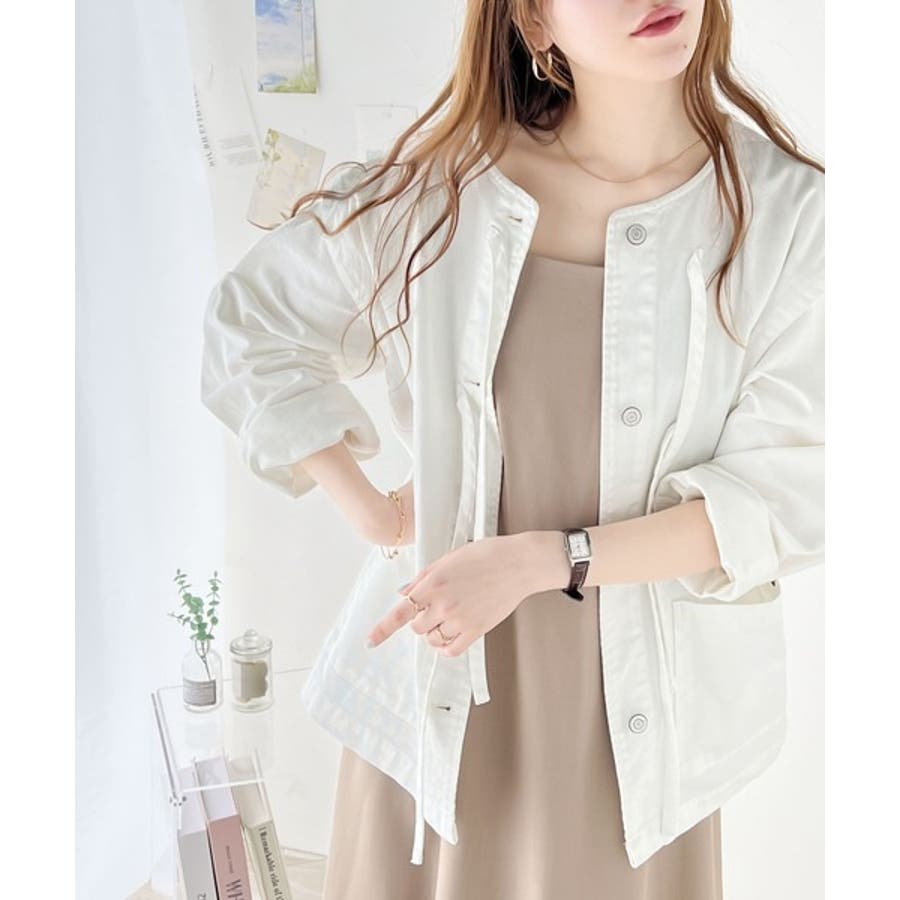 すっきりとしたノーカラーは大人女性にぴったりな一枚です。