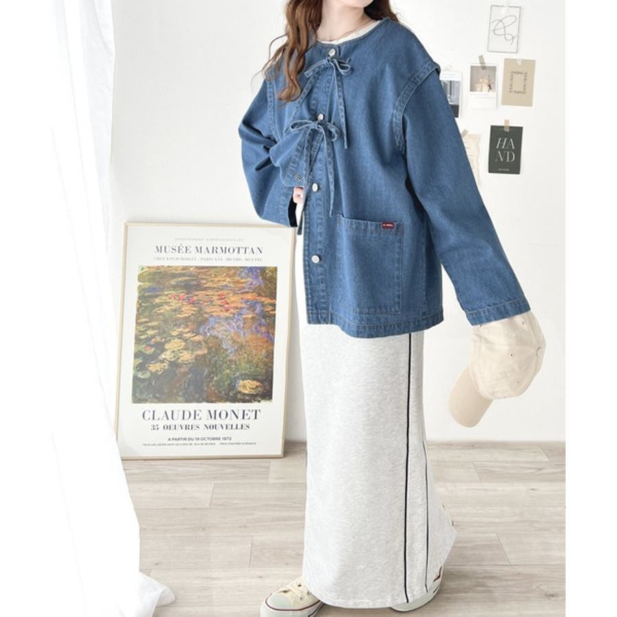 フロントのリボンがアクセントの綿100%デニムGジャン。
