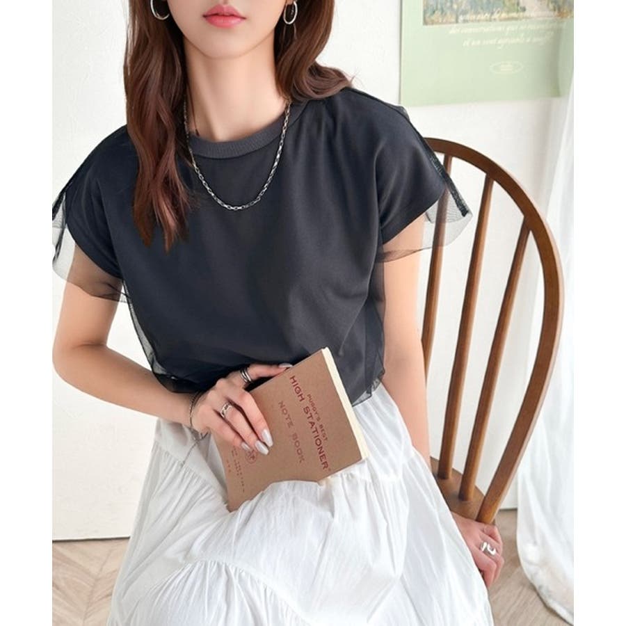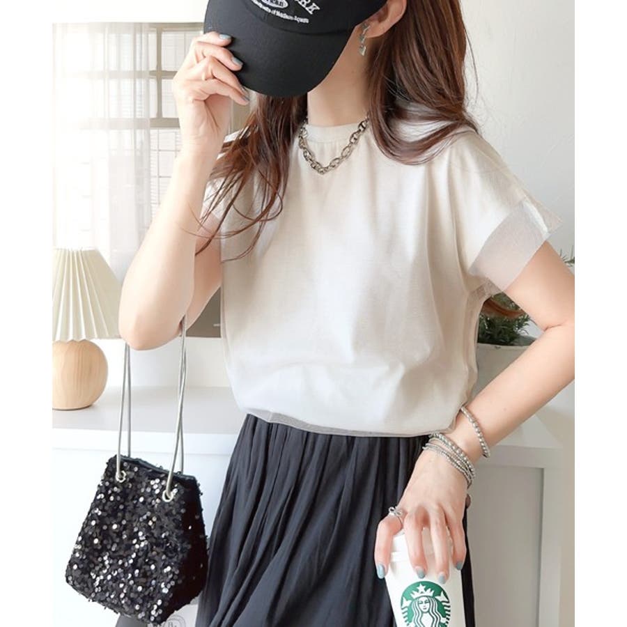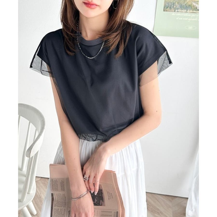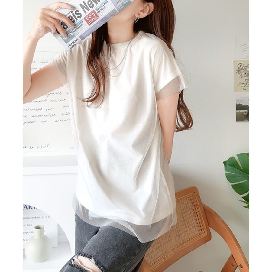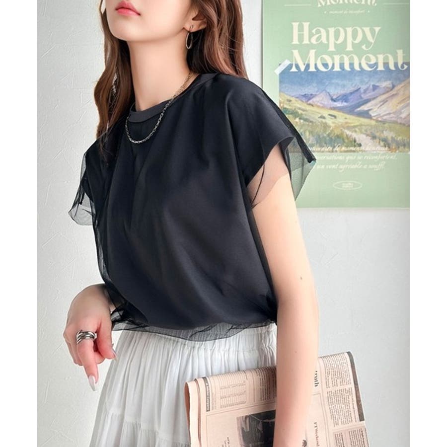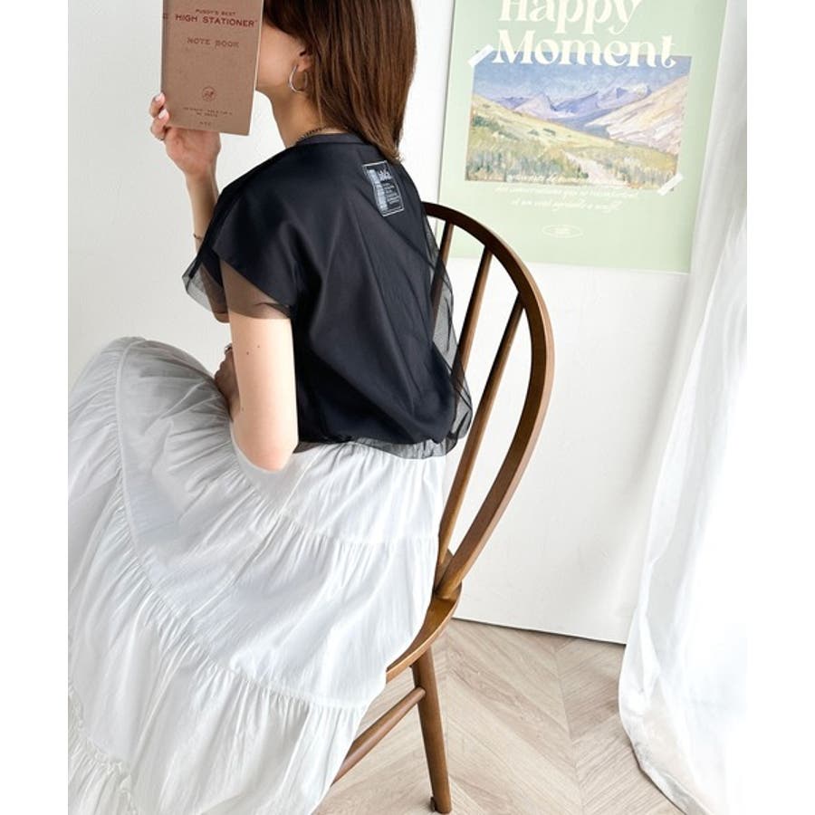 1枚で即こなれ感。バックプリントチュールレイヤードフレンチTシャツ