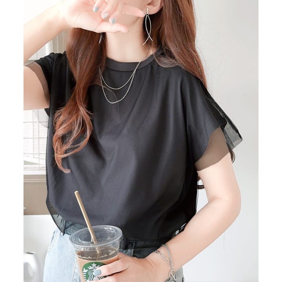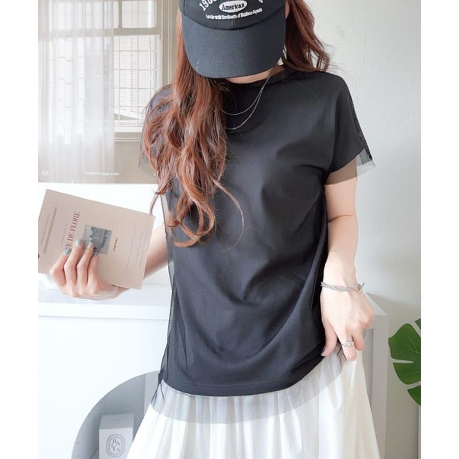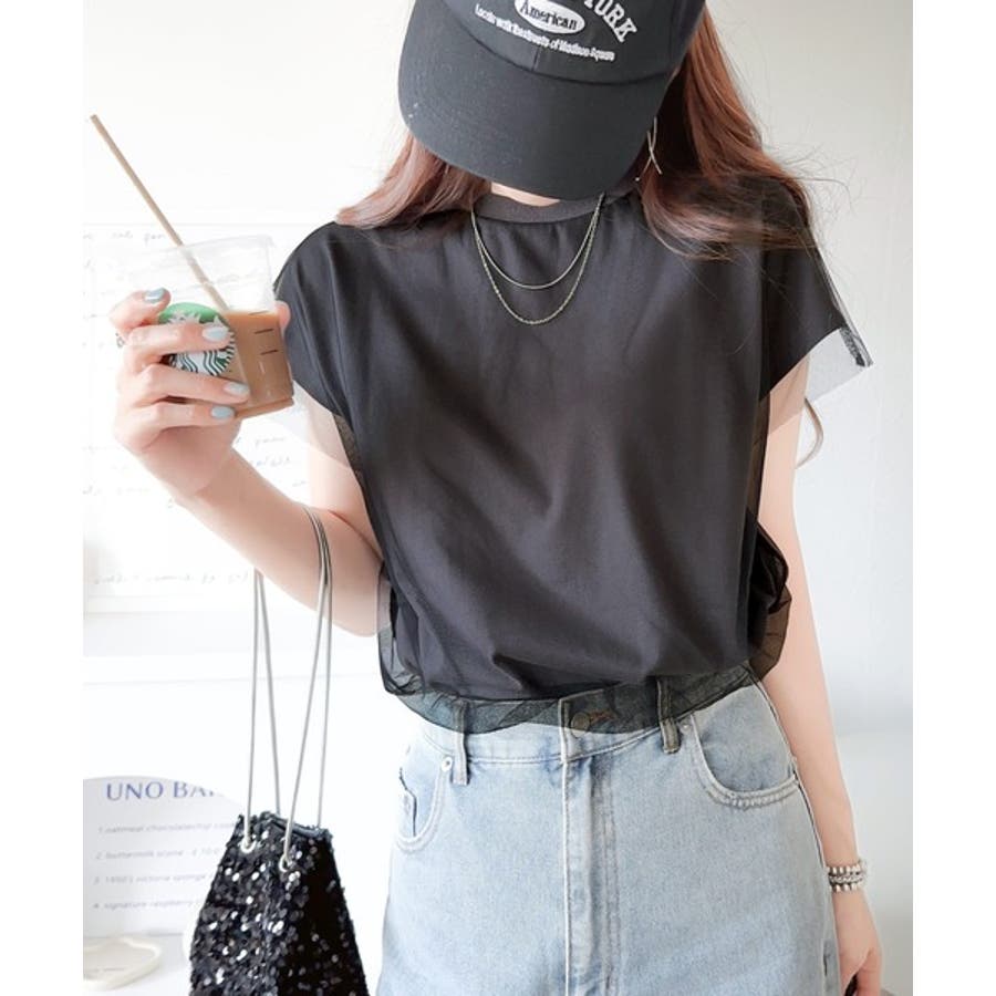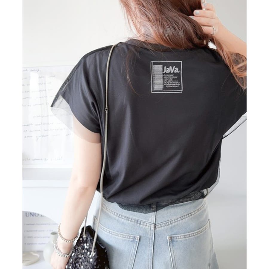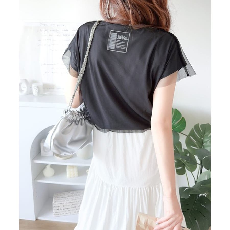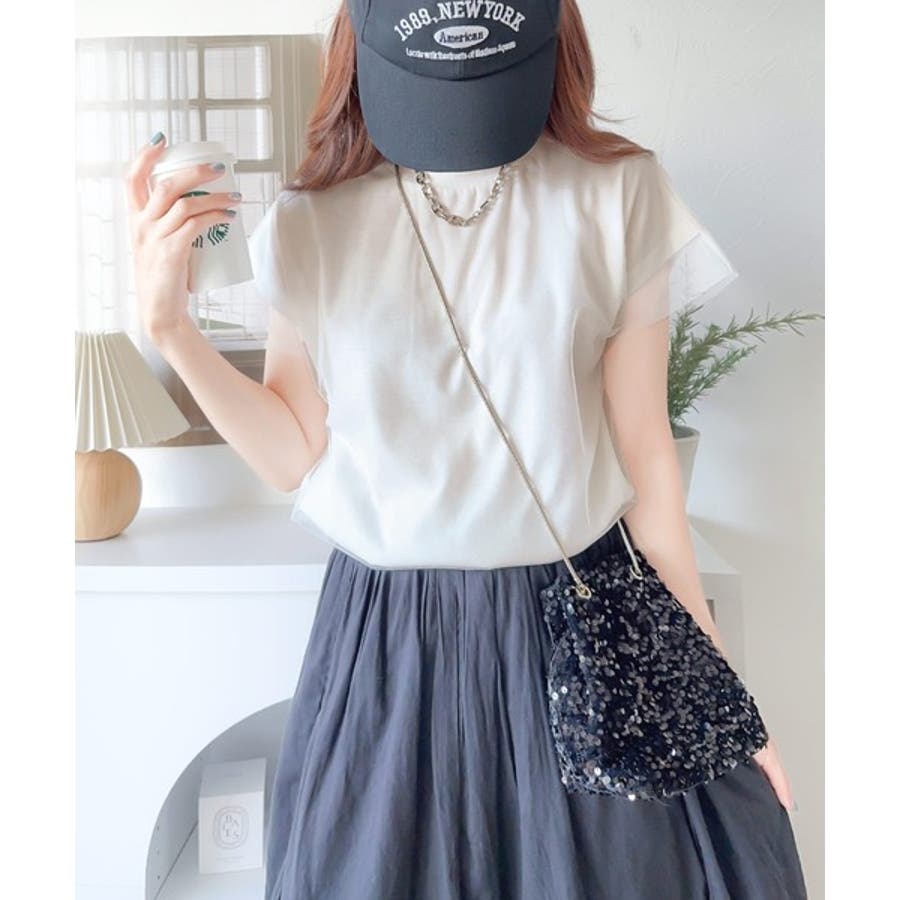 1枚で即こなれ感。バックプリントチュールレイヤードフレンチTシャツ