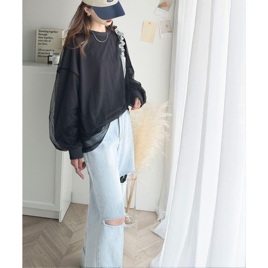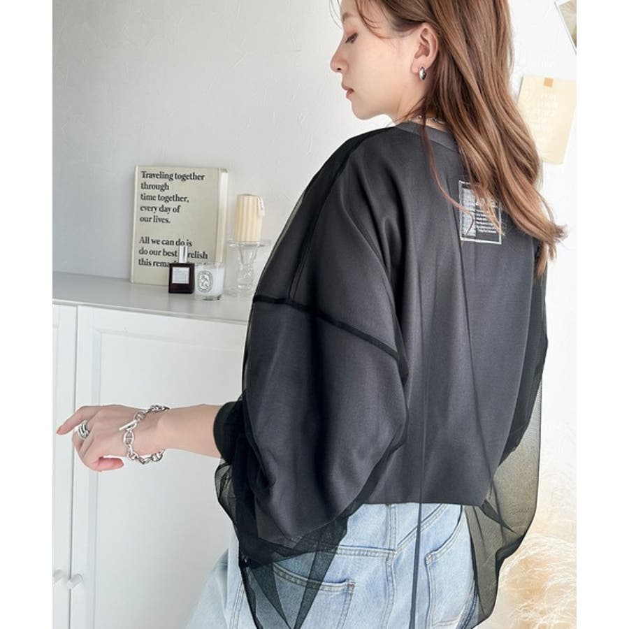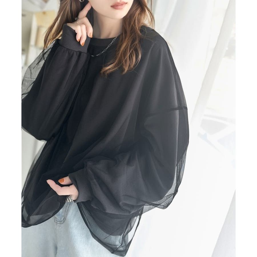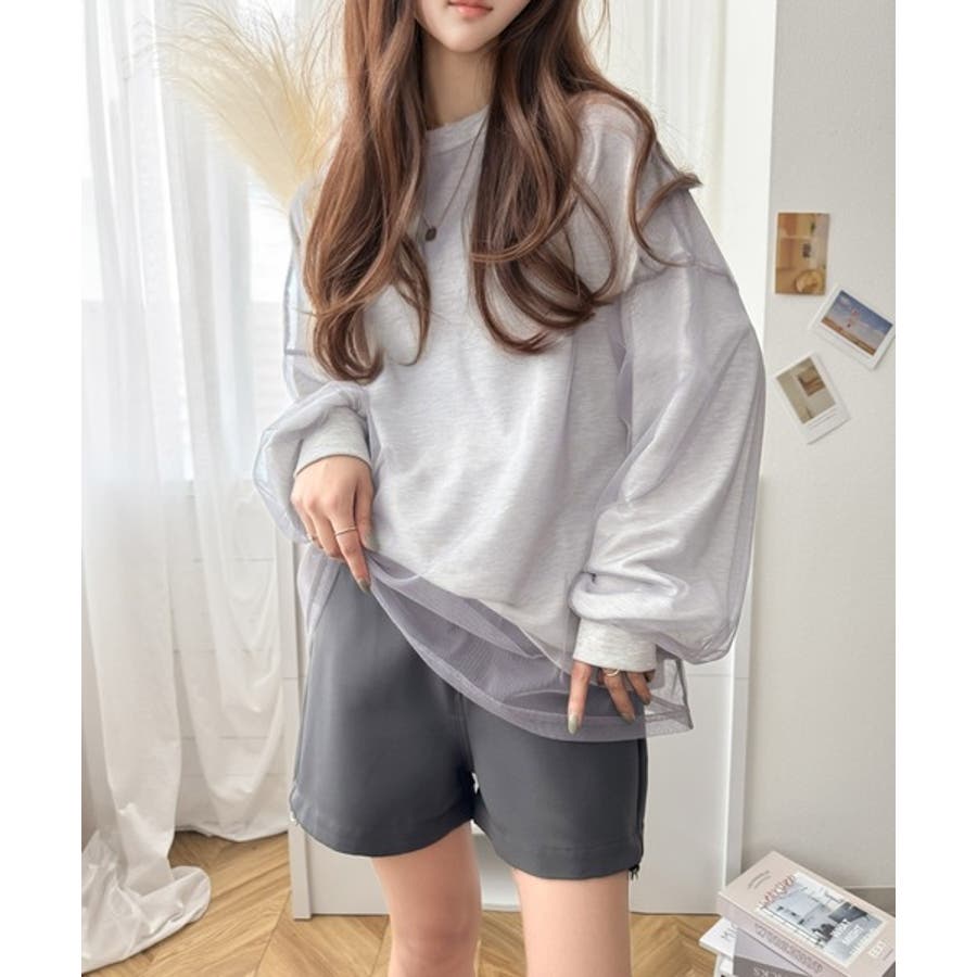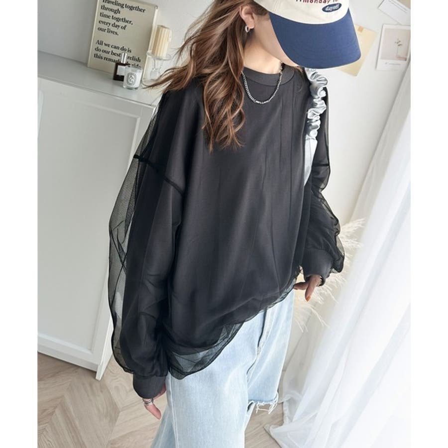 チュール生地をレイヤードした、ミニ裏毛ロンT。