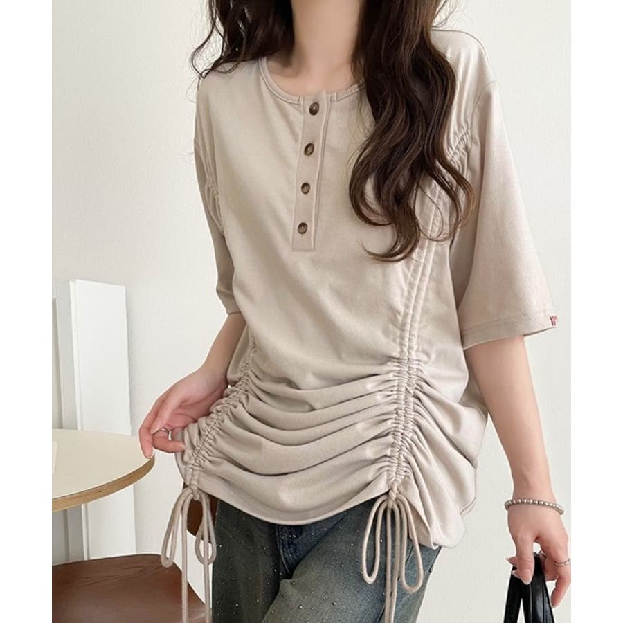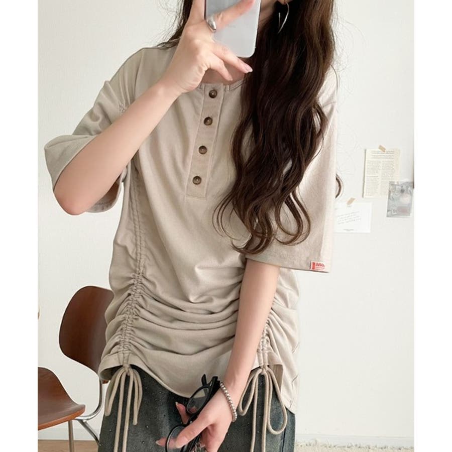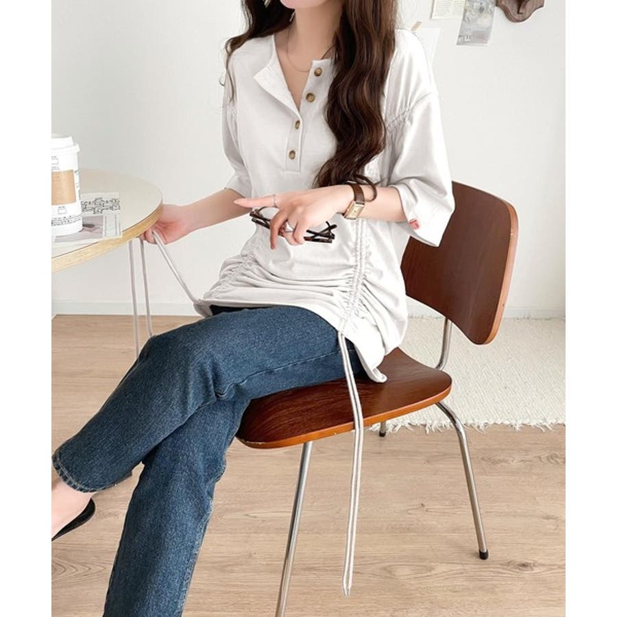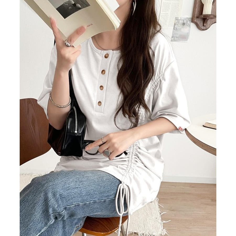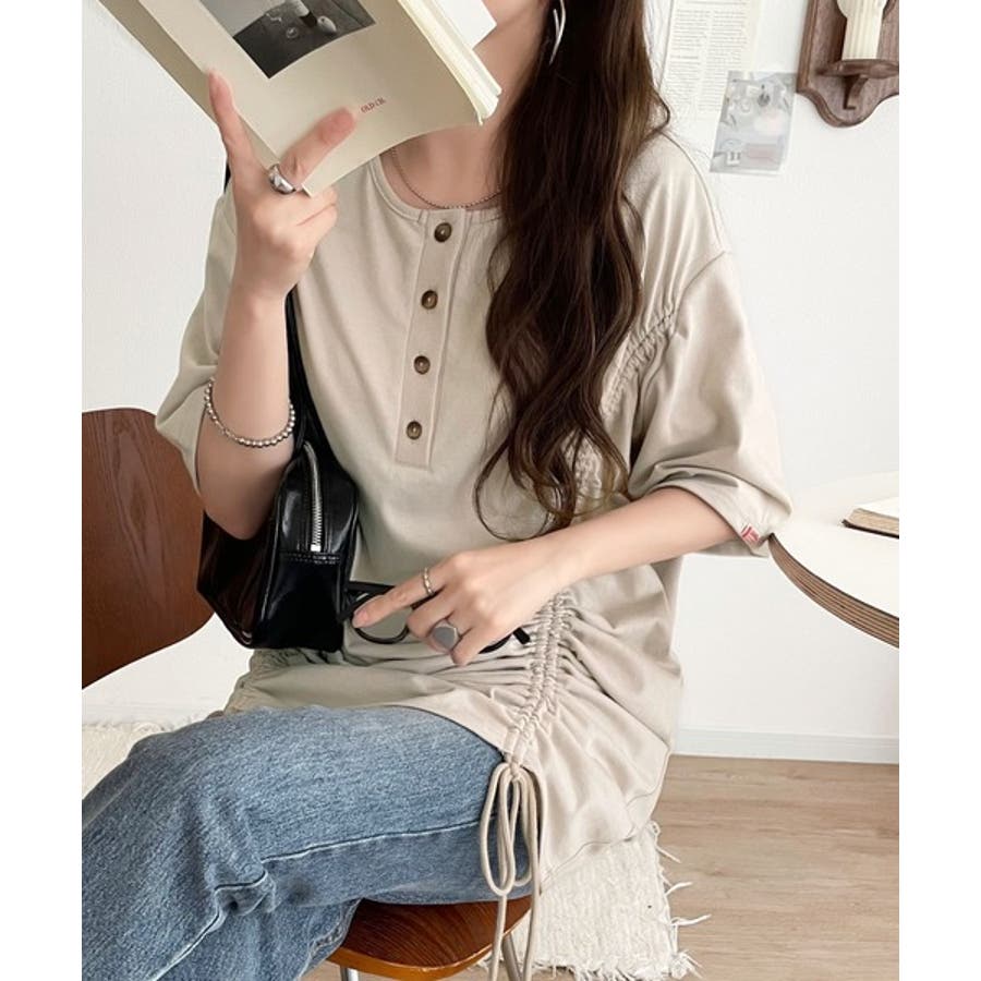 アレンジを楽しむ、私だけの一枚。前後2wayヘンリーネックドロストチュニックTシ…